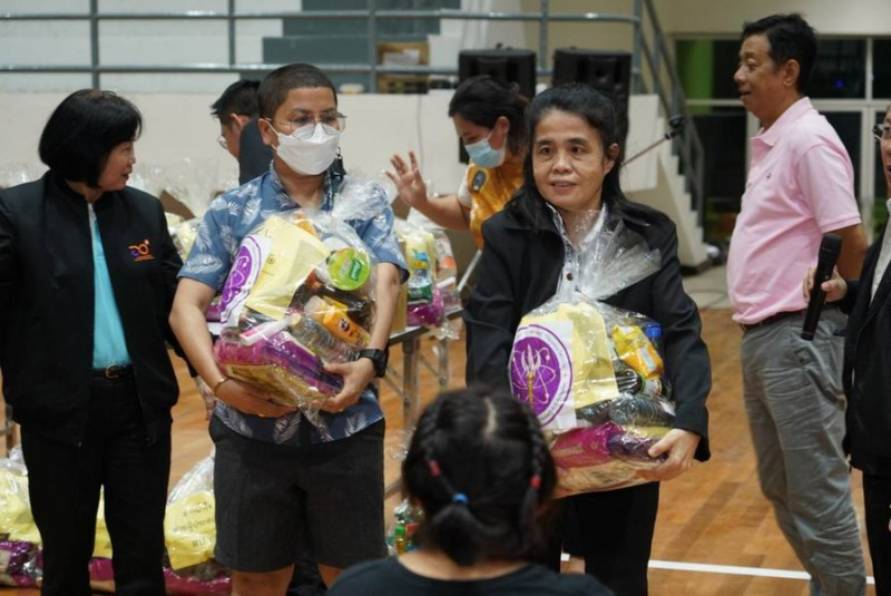 ในเวลาต่อมา ดร.ดนุชฯ เลขานุการรัฐมนตรีว่าการกระทรวง อว. พร้อมด้วย นางสาวสุณีย์ฯ หัวหน้าผู้ตรวจราชการกระทรวง อว. และคณะ ได้มอบสิ่งของให้กับบุคลากร อว. อาทิ ข้าวสาร อาหารแห้ง ยารักษาโรค หน้ากากอนามัย ฯลฯ ทั้งนี้ ได้ร่วมกันประกอบอาหารพร้อมรับประทานร่วมกับบุคลากร โดยในวันที่ 9 ตุลาคม 2565 ทางคณะจะเดินทางไปที่มหาวิทยาลัยราชภัฏสารคามเพื่อให้ความช่วยเหลือเป็นลำดับต่อไป