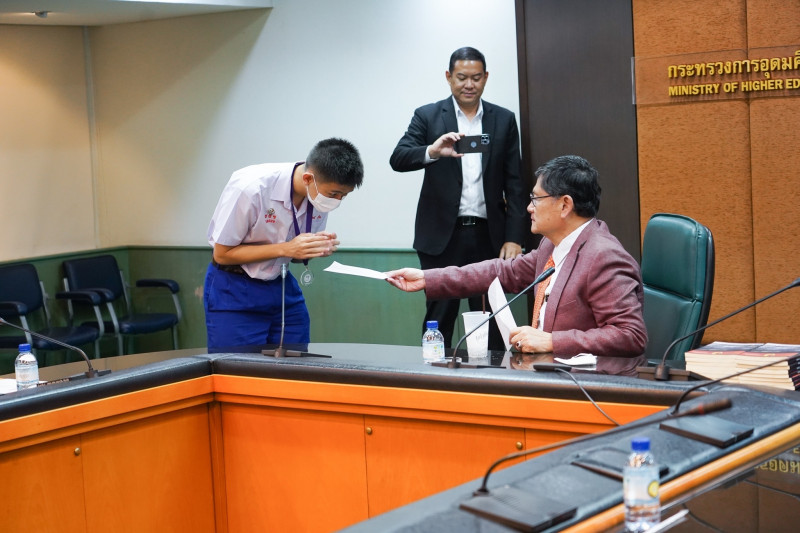 เมื่อวันที่ 23 พฤศจิกายน 2565 ดร.รวิน ระวิวงศ์ ผู้อำนวยการองค์การพิพิธภัณฑ์วิทยาศาสตร์แห่งชาติ (อพวช.) พร้อมด้วย นายจักริน จันทรวิสูตร กรรมการผู้จัดการบริษัทแกมมาโก้ (ประเทศไทย) จำกัด และคณะ นำคณะนักเรียนโรงเรียนอัสสัมชัญลำปางที่ชนะการแข่งขันโอลิมปิกหุ่นยนต์ World Robot Olympiad ระดับนานาชาติ ที่เมืองดอร์ทมุนด์ ประเทศเยอรมนี ระหว่างวันที่ 17 - 19 พฤศจิกายน 2565 ที่ผ่านมา เข้าพบ ศ.(พิเศษ) ดร.เอนก เหล่าธรรมทัศน์ รัฐมนตรีว่าการกระทรวงการอุดมศึกษา วิทยาศาสตร์ วิจัยและนวัตกรรม (อว.), ศ.ดร.นพ.สิริฤกษ์ ทรงศิวิไล ปลัดกระทรวง อว., และ รศ.ดร.พาสิทธิ์ หล่อธีรพงศ์ รองปลัดกระทรวง อว. ณ ห้องประชุมชั้น 4 อาคารพระจอมเกล้า สำนักงานปลัดกระทรวงการอุดมศึกษา วิทยาศาสตร์ วิจัยและนวัตกรรม (สป.อว.)