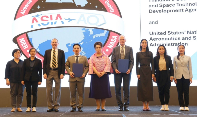 เมื่อวันที่ 14 มี.ค.67 นางสาวศุภมาส อิศรภักดี รัฐมนตรีว่าการกระทรวงการอุดมศึกษา วิทยาศาสตร์ วิจัยและนวัตกรรม (อว.) เป็นสักขีพยานในการลงนามความร่วมมือระหว่างกระทรวง อว.โดยสำนักงานพัฒนาเทคโนโลยีอวกาศและภูมิสารสนเทศ (องค์การมหาชน) หรือ GISTDA กับ องค์การบริหารการบินและอวกาศแห่งชาติ สหรัฐอเมริกา หรือ NASA ภายใต้โครงการ Airborne and Satellite Investigation of Asian Air Quality (ASIA-AQ) เพื่อร่วมกันศึกษาคุณภาพอากาศในประเทศไทย โดยมี นางสาวสุชาดา แทนทรัพย์ เลขานุการ รมว.อว. เข้าร่วม ณ โรงแรมเรเนซองส์ พัทยา รีสอร์ท แอนด์ สปา จังหวัดชลบุรี