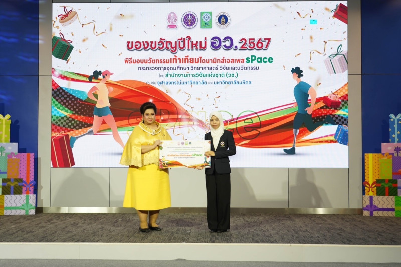 เมื่อวันที่ 3 เม.ย. นางสาวศุภมาส อิศรภักดี รมว.การอุดมศึกษา วิทยาศาสตร์ วิจัยและนวัตกรรม (อว.) เป็นประธานในพิธีส่งมอบนวัตกรรม “เท้าเทียมไดนามิกส์เอสเพส (sPace)” คุณภาพสูง เพื่อพัฒนาคุณภาพชีวิตผู้พิการ ให้โรงพยาบาล 7 แห่ง ภายใต้โครงการของขวัญปีใหม่ 2567 จากกระทรวง อว. โดยสำนักงานการวิจัยแห่งชาติ (วช.) ร่วมกับจุฬาลงกรณ์มหาวิทยาลัย และมหาวิทยาลัยมหิดล โดยมี ดร.วิภารัตน์ ดีอ่อง ผู้อำนวยการ วช. นพ.รุ่งเรือง กิจผาติ อธิบดีกรมวิทยาศาสตร์บริการ (วศ.) นางสาวสุณีย์ เลิศเพียรธรรม หัวหน้าผู้ตรวจราชการกระทรวง อว. รศ.ดร.ไพรัช ตั้งพรประเสริฐ หัวหน้าโครงการวิจัยฯ พร้อมด้วยตัวแทนผู้รับมอบนวัตกรรมเท้าเทียมทั้ง 7 แห่ง ได้แก่ โรงเรียนกายอุปกรณ์สิรินธร โรงพยาบาลสิรินธร ศูนย์การแพทย์สมเด็จพระเทพรัตนราชสุดาฯ โรงพยาบาลนครปฐม โรงพยาบาลสมุทรสาคร สถาบันราชประชาสมาสัย สมุทรปราการ และโรงพยาบาลเจ้าพระยาอภัยภูเบศร ปราจีนบุรี ณ ห้องแถลงข่าว ชั้น 1 อาคารพระจอมเกล้า สำนักงานปลัดกระทรวงการอุดมศึกษา วิทยาศาสตร์ วิจัยและนวัตกรรม (สป.อว.) ถนนโยธี