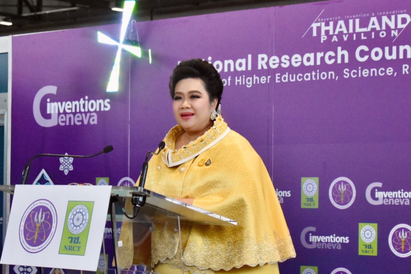 นางสาวศุภมาส อิศรภักดี รัฐมนตรีว่าการกระทรวงการอุดมศึกษา วิทยาศาสตร์ วิจัยและนวัตกรรม เป็นประธานในพิธีแสดงความยินดีแก่นักประดิษฐ์นักวิจัยไทย ที่ได้รับรางวัลจากการประกวดผลงานสิ่งประดิษฐ์ ผลงานวิจัยและนวัตกรรม ในงาน “The 49th International Exhibition of Inventions Geneva” ที่จัดขึ้นเมื่อวันที่ 17 – 21 เมษายน 2567 พร้อมกล่าวแสดงความยินดีแก่นักประดิษฐ์และนักวิจัยไทย ที่ได้รับรางวัลในครั้งนี้ และมอบรางวัล NRCT Special Award 2024 แก่ผลงานี่มีความโดดเด่น โดยมี ดร.วิภารัตน์ ดีอ่อง ผู้อำนวยการสำนักงานการวิจัยแห่งชาติ พร้อมด้วย ผู้บริหารของกระทรวง อว. ผู้บริหารหน่วยงานภาครัฐและเอกชน ผู้ทรงคุณวุฒิ นักประดิษฐ์ และนักวิจัยจาก 37 หน่วยงาน เข้าร่วมในพิธี ณ Palexpo นครเจนีวา สมาพันธรัฐสวิส