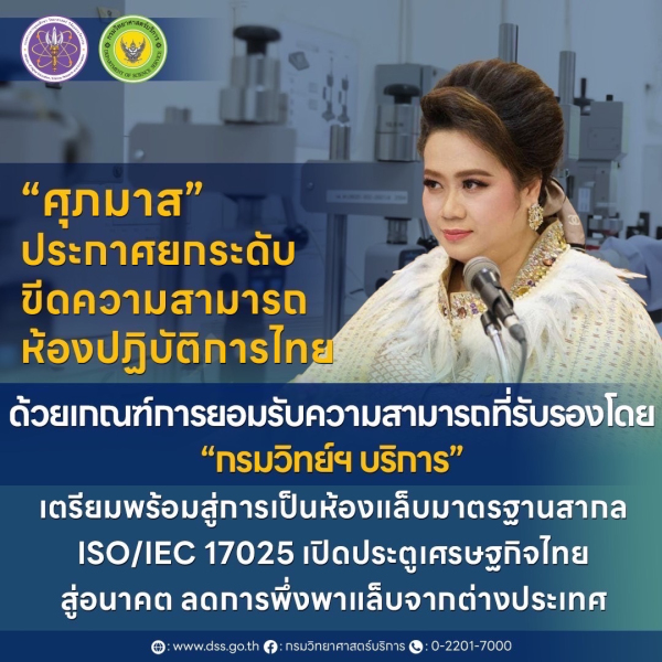 นางสาวศุภมาส อิศรภักดี รมว.การอุดมศึกษา วิทยาศาสตร์ วิจัยและนวัตกรรม (อว.) เปิดเผยว่า การทดสอบห้องปฏิบัติการเป็นกระบวนการที่ส่งผลต่อคุณภาพของผลิตภัณฑ์ที่ถูกนำมาใช้ตั้งแต่การประเมินคุณภาพของวัตถุดิบหรือสารประกอบที่ใช้ในการผลิต การตรวจสอบความปลอดภัยของผลิตภัณฑ์ การรักษาคุณภาพมาตรฐานของผลิตภัณฑ์ และการต่อยอดกระบวนการผลิตเพื่อพัฒนาผลิตภัณฑ์ให้มีคุณภาพที่ดียิ่งขึ้น โดยเป็นที่ยอมรับระดับสากลว่าห้องปฏิบัติการที่มีความสามารถจะต้องได้รับการรับรองคุณภาพตามมาตรฐานสากล ISO/IEC 17025 แต่เนื่องจากปัจจุบันประเทศไทยยังมีห้องปฏิบัติการจำนวนมากที่ยังไม่ได้เข้าสู่กระบวนการรับรองความสามารถตามมาตรฐาน ISO/IEC 17025 ส่งผลให้การทดสอบผลิตภัณฑ์หลายชนิดต้องส่งไปตรวจกับห้องปฏิบัติการในต่างประเทศที่ได้รับการรับรอง ISO/IEC 17025
