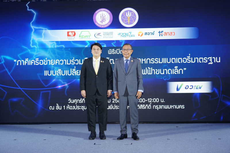 เมื่อวันที่ 5 ก.ค. นายศุภชัย ใจสมุทร ที่ปรึกษารองนายกรัฐมนตรี นายอนุทิน ชาญวีรกูล ได้รับมอบหมายจากนางสาวศุภมาส อิศรภักดี รัฐมนตรีว่าการกระทรวงการอุดมศึกษา วิทยาศาสตร์ วิจัยและนวัตกรรม (อว.) ให้เป็นประธานในพิธีเปิดตัว “ภาคีเครือข่ายความร่วมมือการพัฒนาอุตสาหกรรมแบตเตอรี่มาตรฐานแบบสับเปลี่ยนได้ สำหรับยานยนต์ไฟฟ้าขนาดเล็ก” ซึ่งจัดโดย สมาคมเทคโนโลยีระบบกักเก็บพลังงานไทย และเครือข่ายพันธมิตรภาครัฐและเอกชน ภายในงาน International Energy Storage Forum 2024 - TESTA Annual Symposium ครั้งที่ 4 โดยมีนายดนัยณัฏฐ์ โชคอำนวย ที่ปรึกษารัฐมนตรีว่าการกระทรวงอุตสาหกรรม ดร.สุมิตรา จรสโรจน์กุล ผู้อำนวยการศูนย์เทคโนโลยีพลังงานแห่งชาติ (เอ็นเทค) สำนักงานพัฒนาวิทยาศาสตร์และเทคโนโลยีแห่งชาติ (สวทช.) ดร.เกรียงศักดิ์ วงศ์พร้อมรัตน์ ผู้อำนวยการสถาบันยานยนต์ นายกฤษฎา อุตตโมทย์ นายกสมาคมยานยนต์ไฟฟ้าไทย และ ดร.พิมพา ลิ้มทองกุล นายกสมาคมเทคโนโลยีกักเก็บพลังงานไทย เข้าร่วม ณ ห้องประชุม MR 111 ศูนย์การประชุมแห่งชาติสิริกิติ์ กรุงเทพฯ
