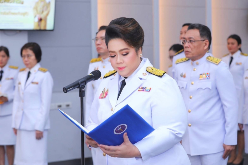 ต่อมา รมว.กระทรวง อว. กล่าวนำ ถวายสัตย์ปฏิญาณเพื่อเป็นข้าราชการที่ดีและพลังของแผ่นดิน ความว่า