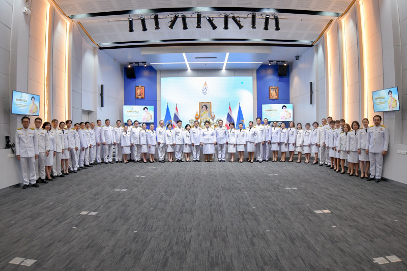 เมื่อวันที่ 7 ส.ค. เวลา 09.00 น. กระทรวงการอุดมศึกษา วิทยาศาสตร์ วิจัยและนวัตกรรม (อว.) จัดงานเฉลิมพระเกียรติสมเด็จพระนางเจ้าสิริกิติ์ พระบรมราชินีนาถ พระบรมราชชนนีพันปีหลวง เนื่องในโอกาสวันเฉลิมพระชนมพรรษา 12 สิงหาคม 2567 นำโดย นางสาวศุภมาส อิศรภักดี รัฐมนตรีว่าการกระทรวง อว. พร้อมด้วย นายเพิ่มสุข สัจจาภิวัฒน์ ปลัดกระทรวง อว., ดร.จันทร์เพ็ญ เมฆาอภิรักษ์ รองปลัดกระทรวง อว., น.ส.สุณีย์ เลิศเพียรธรรม หัวหน้าผู้ตรวจราชการกระทรวง อว., นางสาววราภรณ์ รุ่งตระการ ที่ปรึกษาด้านระบบบริหารการอุดมศึกษา วิทยาศาสตร์ วิจัยและนวัตกรรม, นายวันนี นนท์ศิริ ผู้ช่วยปลัดกระทรวง อว. และผู้บริหาร หัวหน้าหน่วยงาน ข้าราชการ และเจ้าหน้าที่ เข้าร่วมพิธี ณ ห้องแถลงข่าวชั้น 1 อาคารพระจอมเกล้า สำนักงานปลัดกระทรวง อว.