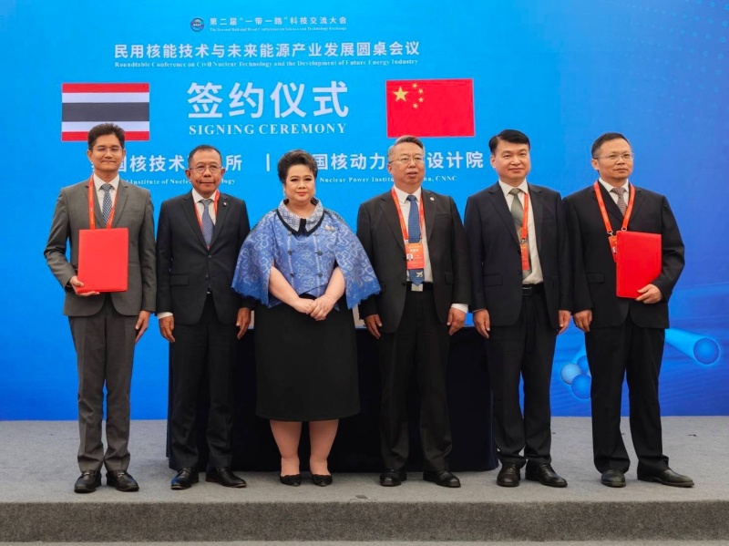 จากนั้น น.ส.ศุภมาส พร้อมด้วยนายศุภชัย ใจสมุทร ผู้ช่วย รมว.อว. ได้ร่วมเป็นสักขีพยานการลงนามบันทึกความเข้าใจ (MoU) ระหว่างสถาบันเทคโนโลยีนิวเคลียร์แห่งชาติ (องค์การมหาชน) หรือสทน.กับ Nuclear Power Institute of China (NPIC) เพื่อจัดตั้ง “ห้องปฏิบัติการร่วมด้านเครื่องปฏิกรณ์นิวเคลียร์ขนาดเล็ก (SMR Joint Laboratory)” โดยความร่วมมือครั้งนี้ถือเป็นก้าวสำคัญในการสร้างฐานความรู้ การวิจัยและนวัตกรรมด้านพลังงานนิวเคลียร์ของไทยพร้อมขยายความร่วมมือในอนาคตสู่สาขาอื่น ๆ ที่เกี่ยวข้อง ที่สำคัญการเดินหน้าร่วมมือระหว่างไทยและจีนในครั้งนี้ไม่เพียงช่วยเสริมความมั่นคงด้านพลังงาน แต่ยังตอกย้ำความเป็นพันธมิตรทางวิทยาศาสตร์และเทคโนโลยีในกรอบข้อริเริ่มสายแถบและเส้นทาง(Belt and Road Initiative - BRI) เพื่อก้าวสู่อนาคตที่ยั่งยืนร่วมกันด้วย