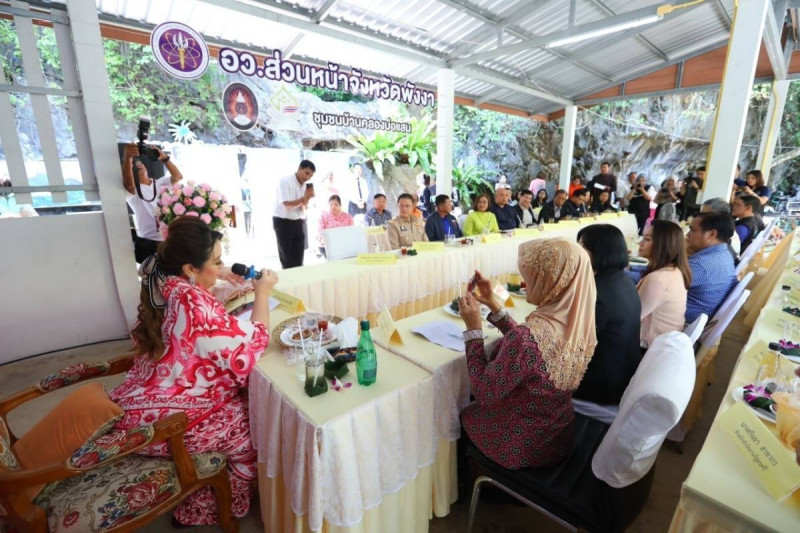 เมื่อวันที่ 20 ม.ค. น.ส.ศุภมาส อิศรภักดี รมว.การอุดมศึกษา วิทยาศาสตร์ วิจัยและนวัตกรรม (อว.) พร้อมด้วย พญ.เพชรดาว โต๊ะมีนา ที่ปรึกษารัฐมนตรีว่าการกระทรวง อว. น.ส.สุณีย์ เลิศเพียรธรรม หัวหน้าผู้ตรวจราชการกระทรวง และคณะผู้บริหาร อว. ลงพื้นที่เยี่ยมชมแหล่งเรียนรู้อาหารและขนมพื้นบ้านพังงาของกลุ่มวิสาหกิจชุมชนและกลุ่มพัฒนาอาชีพ อ.ทับปุด จ.พังงา ก่อนการประชุมคณะรัฐมนตรีอย่างเป็นทางการนอกสถานที่ ณ พื้นที่กลุ่มจังหวัดภาคใต้ฝั่งอันดามัน (กระบี่ ตรัง พังงา ภูเก็ต ระนอง และสตูล) ณ บ้านคลองบ่อแสน อ.ทับปุด จ.พังงา โดยมี นายสุพจน์ รอดเรือง ณ หนองคาย ผู้ว่าราชการจังหวัดพังงา นายกลวัชร ทรัพย์ส่งสุข รองผู้ว่าราชการจังหวัดพังงา น.ส.พวงเพชร ฤทธิพรพันธุ์ ผู้อำนวยการวิทยาลัยชุมชนพังงา นายอรรถพล ไตรศรี สส.จังหวัดพังงา และชาวบ้านกลุ่มวิสาหกิจชุมชนและกลุ่มพัฒนาอาชีพ อ.ทับปุด จ.พังงา ทั้ง 10 กลุ่ม กว่า 300 คน ให้การต้อนรับ