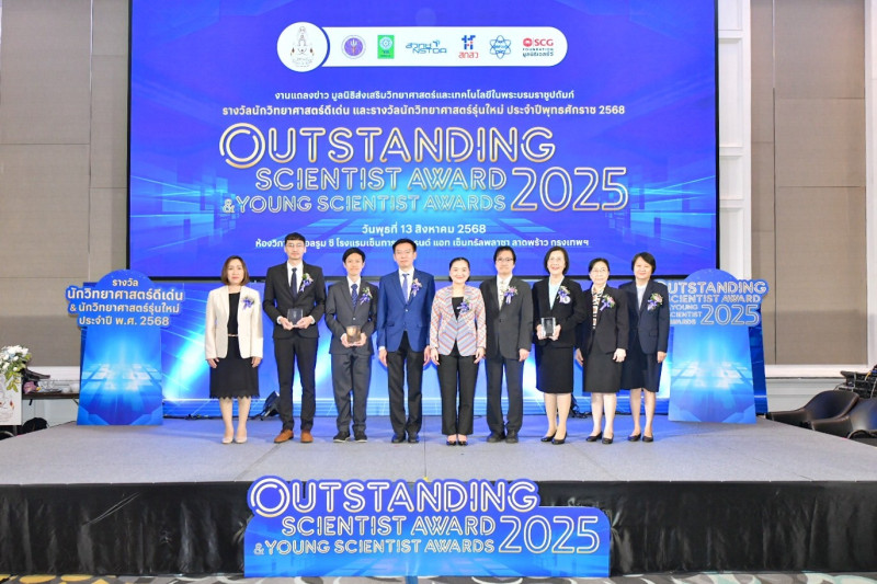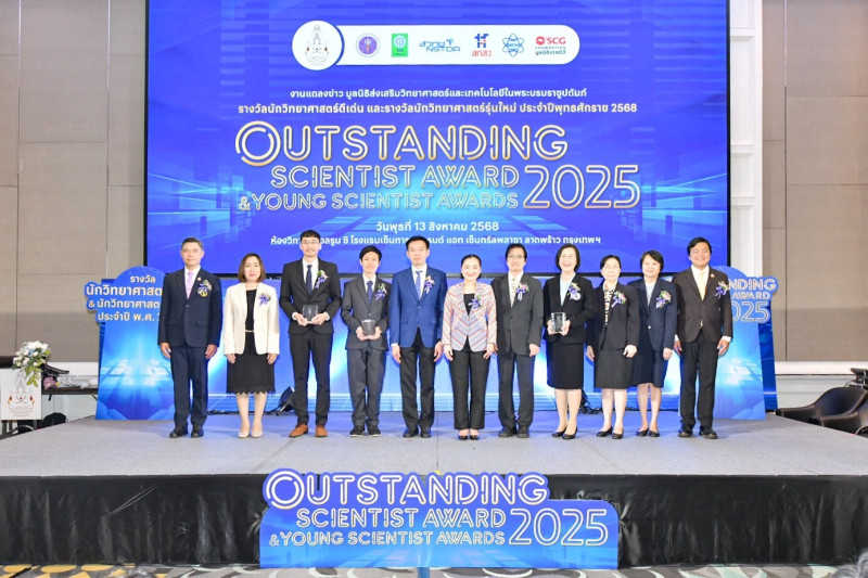 เมื่อวันที่ 13 ส.ค. นางสาวสุดาวรรณ หวังศุภกิจโกศล รัฐมนตรีว่าการกระทรวงการอุดมศึกษา วิทยาศาสตร์ วิจัยและนวัตกรรม (อว.) เป็นประธานในพิธีและมอบโล่รางวัลนักวิทยาศาสตร์ดีเด่นและรางวัลนักวิทยาศาสตร์รุ่นใหม่ประจำปี 2568 จัดโดย มูลนิธิส่งเสริมวิทยาศาสตร์และเทคโนโลยีในพระบรมราชูปถัมภ์ ร่วมกับสมาคมวิทยาศาสตร์แห่งประเทศไทยในพระบรมราชูปถัมภ์ สำนักงานพัฒนาวิทยาศาสตร์และเทคโนโลยีแห่งชาติ (สวทช.) สำนักงานคณะกรรมการส่งเสริมวิทยาศาสตร์ วิจัยและนวัตกรรม (สกสว.) สถาบันส่งเสริมการสอนวิทยาศาสตร์และเทคโนโลยี (สสวท.) สำนักงานการวิจัยแห่งชาติ (วช.) และมูลนิธิเอสซีจี โดยมี ศ.ดร.ศุภชัย ปทุมนากุล ปลัดกระทรวง อว. ศ.ดร.จำรัส ลิ้มตระกูล ประธานคณะกรรมการรางวัลนักวิทยาศาสตร์ดีเด่น และผู้ที่ได้รับรางวัลเข้าร่วมงานแถลงข่าว ณ โรงแรมเซ็นทารา แกรนด์ แอท เซ็นทรัลพลาซา ลาดพร้าว กรุงเทพฯ