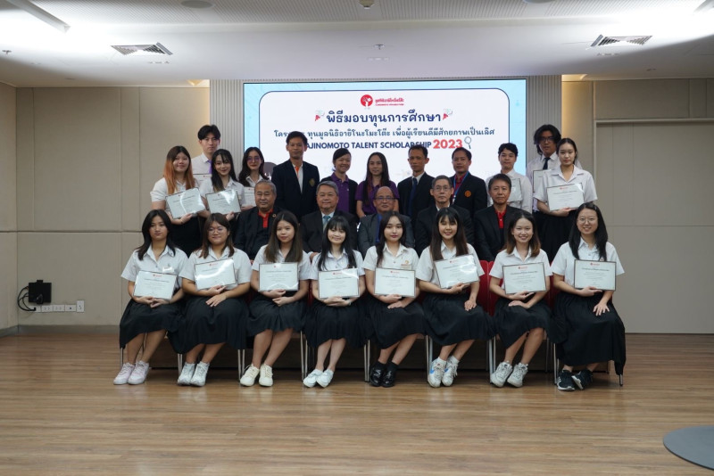 เมื่อวันที่ 15 มี.ค. นายเพิ่มสุข สัจจาภิวัฒน์ ปลัดกระทรวงการอุดมศึกษา วิทยาศาสตร์ วิจัยและนวัตกรรม มอบหมายให้นายสุทน เฉื่อยพุก ผู้อำนวยการกองส่งเสริมและพัฒนากำลังคน สำนักงานปลัดกระทรวงการอุดมศึกษา วิทยาศาสตร์ วิจัยและนวัตกรรม (สป.อว.) เป็นผู้แทนมอบเกียรติบัตรและกล่าวคำให้โอวาทในพิธีมอบทุนการศึกษา ภายใต้ชื่อโครงการ “ทุนมูลนิธิอายิโนะโมะโต๊ะเพื่อผู้เรียนดีมีศักยภาพเป็นเลิศ” (Ajinomoto Talent Scholarship) ในปีการศึกษา 2566 โดยสนับสนุนทุนการศึกษาให้กับนิสิต นักศึกษา ชั้นปีที่ 1 ปีที่ 2 และปีที่ 3 ที่มีผลการเรียนดีเด่น มีความสนใจและมีศักยภาพที่จะสร้างสรรค์นวัตกรรม ที่กำลังศึกษาด้านวิทยาศาสตร์และวิศวกรรมศาสตร์ ในสาขาวิชาที่เกี่ยวข้องกับอาหาร โภชนาการ สุขภาพและสิ่งแวดล้อม ในสถาบันอุดมศึกษา จำนวน 10 แห่ง ได้แก่ จุฬาลงกรณ์มหาวิทยาลัย มหาวิทยาลัยธรรมศาสตร์ มหาวิทยาลัยเกษตรศาสตร์ มหาวิทยาลัยมหิดล มหาวิทยาลัยเทคโนโลยีพระจอมเกล้าธนบุรี มหาวิทยาลัยเทคโนโลยีพระจอมเกล้าพระนครเหนือ สถาบันเทคโนโลยีพระจอมเกล้าเจ้าคุณทหารลาดกระบัง มหาวิทยาลัยเชียงใหม่ มหาวิทยาลัยสงขลานครินทร์ และมหาวิทยาลัยขอนแก่น จำนวนทุนละ 60,000 บาทต่อปีการศึกษา ต่อเนื่องจนจบหลักสูตรการศึกษา เพื่อพัฒนาทรัพยากรบุคคลกลุ่มนี้ให้เป็นนวัตกรด้านอาหาร สุขภาพและสิ่งแวดล้อมรุ่นใหม่ของไทยในอนาคต ซึ่งในปีการศึกษา 2566 มีผู้ได้รับทุนทั้งสิ้น 102 คน ณ ห้องประชุม 04-01/04-02 ชั้น 4 อาคารศรีอยุธยา กรุงเทพฯ