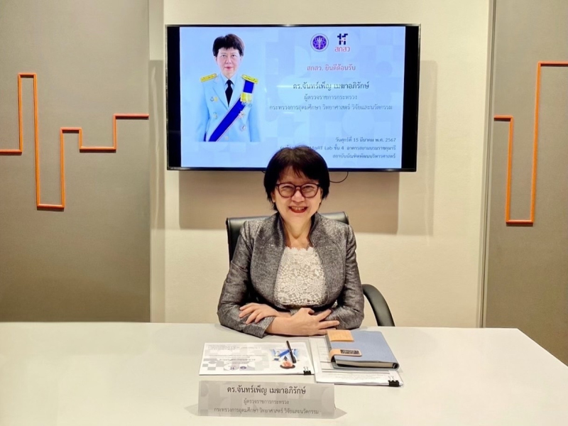 15 มีนาคม ดร.จันทร์เพ็ญ เมฆาอภิรักษ์ ผู้ตรวจราชการกระทรวง อว. และคณะ ได้ลงพื้นที่ตรวจเยี่ยมการปฏิบัติงานตามภารกิจของสำนักงานคณะกรรมการส่งเสริมวิทยาศาสตร์ วิจัยและนวัตกรรม ณ ห้อง GSAS SM@RT Lab ชั้น 4 อาคารสยามบรมราชกุมารี สถาบันบัณฑิตพัฒนบริหารศาสตร์ กรุงเทพฯ โดยมี ผศ. เชิญโชค ศรขวัญ รองผู้อำนวยการ สกสว. และคณะ ให้การต้อนรับและกล่าวรายงานผลการดำเนินงานที่มีผลสัมฤทธิ์เชิงประจักษ์ในการพัฒนางานวิจัย วิทยาศาสตร์แนวหน้า นวัตกรรมใหม่ ควบคู่กับการพัฒนาทุนทางปัญญา ในการนี้ ดร.จันทร์เพ็ญ ได้กล่าวชื่นชมบุคลากร สกสว. และขอบคุณ สกสว. ที่ทุ่มเททำงานเพื่อการพัฒนาประเทศชาติ
