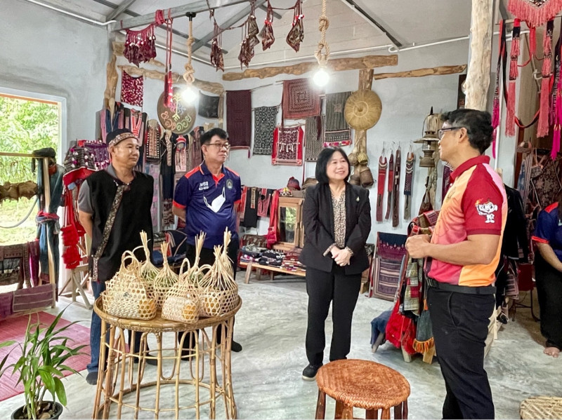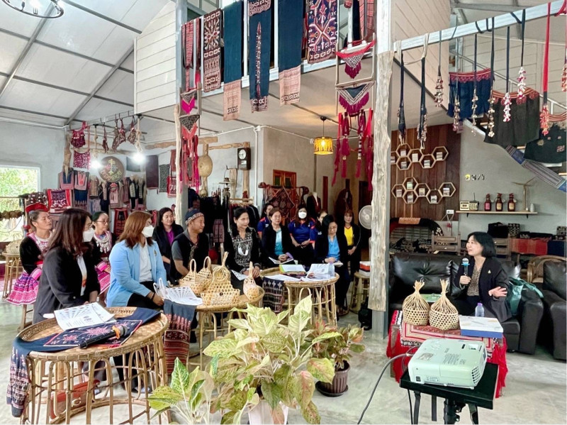 จากนั้น หน.ผตร.อว. ได้เยี่ยมชมผลิตภัณฑ์ของศูนย์การเรียนรู้หลงดอย และชมการสาธิตการสร้างรายได้ของชุมชน ผ่านกิจกรรม “ตลาดนัดออนไลน์ สินค้าพื้นถิ่นหลงดอย” ในการนี้ หน.ผตร.อว. ได้กล่าวชื่นชม มรภ. กำแพงเพชร ที่ช่วยสนับสนุนองค์วามรู้และบูรณาการในภาคส่วนต่างๆ รวมทั้งชื่นชมชุมชนในพื้นที่ซึ่งมีความเข้มแข็งในระดับหนึ่งในการสร้างและสืบสานอัตลักษณ์ทางด้านวัฒนธรรมจากปราชญ์ชาวบ้านและเพิ่มรายได้ให้กับชุมชน พร้อมนี้ได้มีข้อเสนอแนะให้ชุมชน บุคลากร หรือผู้ที่สนใจสามารถเรียนรู้เพิ่มเติมได้จาก Thai mooc รวมถึงการทำคลิปเพื่อสื่อสารเผยแพร่ด้านการท่องเที่ยว เนื่องจากมีทุนทางวัฒนธรรมในพื้นที่จำนวนมาก ซึ่งสามารถพัฒนาต่อยอดเพื่อให้เกิดเป็นแหล่งท่องเที่ยวทางวัฒนธรรมได้อย่างยั่งยืน