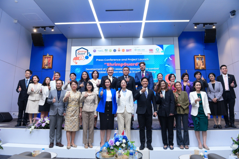 6 สิงหาคม 2567 กรุงเทพฯ - สำนักงานพัฒนาวิทยาศาสตร์และเทคโนโลยีแห่งชาติ (สวทช.) และมหาวิทยาลัยเกษตรศาสตร์ ร่วมกับทีมวิจัยจาก กรมประมง มหาวิทยาลัยเทคโนโลยีราชมงคลตะวันออก และ สถาบันเทคโนโลยีนานาชาติสิรินธร มหาวิทยาลัยธรรมศาสตร์ แถลงข่าวเปิดโครงการความร่วมมือ ‘ชริมป์การ์ด’ (ShrimpGuard): การพัฒนาสูตรผสมของแบคทีริโอฟาจ (bacteriophage) หรือฟาจ (phage) และสารเสริมชีวนะเพื่อต่อสู้กับเชื้อแบคทีเรีย Vibrio spp. ที่ดื้อต่อยาปฏิชีวนะในกุ้งเลี้ยง’ หรือ ‘ชริมป์การ์ด’ โครงการนี้ได้รับทุนสนับสนุนจำนวน 41,605,962 บาท จากศูนย์วิจัยการพัฒนาระหว่างประเทศ (International Development Research Centre: IDRC) ประเทศแคนาดา และกระทรวงสาธารณสุขและสังคม (Department of Health and Social Care) แห่งสหราชอาณาจักร ระยะเวลาดำเนินการ 32 เดือน ตั้งแต่เดือนเมษายน 2567 ถึงเดือนธันวาคม 2569