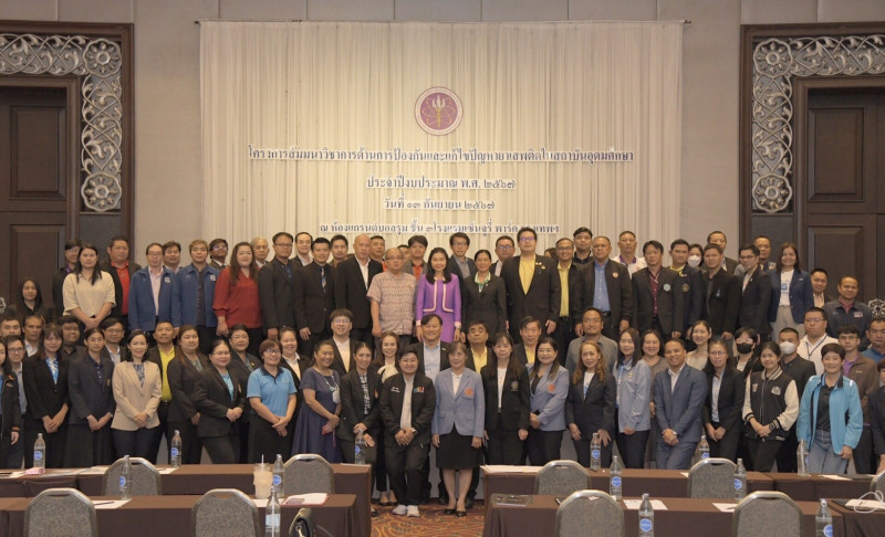 การสัมมนาวิชาการด้านการป้องกันและแก้ไขปัญหายาเสพติดในสถาบันอุดมศึกษา เป็นหนึ่งในโครงการที่จะพัฒนาศักยภาพบุคลากรที่ปฏิบัติงานด้านการป้องกันปัญหายาเสพติดในสถาบันอุดมศึกษาให้ได้รับความรู้และทักษะที่จำเป็นต่อการปฏิบัติงาน และได้รับทราบแนวทางการดำเนินงานด้านการป้องกันและแก้ไขปัญหายาเสพติด เพื่อนำไปกำหนดแผนการดำเนินงานให้สอดคล้องกับนโยบายของรัฐบาลและสถานการณ์ปัญหายาเสพติดในพื้นที่ รวมทั้งได้พบปะและแลกเปลี่ยนประสบการณ์ในการทำงานร่วมกัน เพื่อนำไปปรับใช้กับการดำเนินงานตามบริบทของแต่ละสถาบันและสถานการณ์ปัญหายาเสพติดในแต่ละพื้นที่ ซึ่งจะส่งผลให้การดำเนินงานเกิดประสิทธิภาพและยั่งยืน