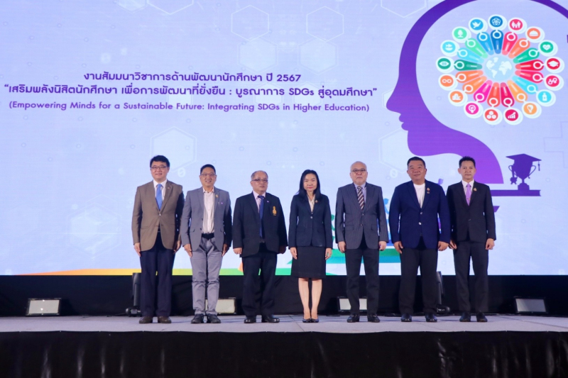ภายในงานสัมมนาวิชาการด้านพัฒนานักศึกษา ปี 2567 วันแรก มีกิจกรรมซึ่งประกอบด้วยการบรรยายพิเศษในหัวข้อ “พลังการศึกษา เพื่อการพัฒนาที่ยั่งยืน” โดย ดร.ชาติชาย นรเศรษฐาภรณ์ ที่ปรึกษาฝ่ายพัฒนาการศึกษาและสังคมอย่างยั่งยืน บริษัท กลุ่ม เซ็นทรัล จำกัด ซึ่งจะมาร่วมแลกเปลี่ยนแนวคิดด้านการศึกษาซึ่งเป็นอาวุธสำคัญในการขับเคลื่อนเป้าหมายการพัฒนาที่ยั่งยืน นอกจากนี้ ยังมีการแสดงวิสัยทัศน์เวทีเสวนาในหัวข้อ “เสริมพลังนิสิตนักศึกษา เพื่อการพัฒนาที่ยั่งยืน: บูรณาการ SDGs สู่อุดมศึกษาไทย” โดย ผศ.รัชด ชมภูนิช ประธานคณะกรรมการพัฒนาศักยภาพนิสิตนักศึกษา ที่ประชุมอธิการบดีแห่งประเทศไทยและรองอธิการบดีฝ่ายกิจการนิสิตและพัฒนาอย่างยั่งยืน มหาวิทยาลัยเกษตรศาสตร์ ผศ.ว่าที่เรืออากาศตรี ดร.บัญชา สำรวยรื่น รองอธิการบดีฝ่ายกิจการนักศึกษาและวิเทศสัมพันธ์ มหาวิทยาลัยราชภัฏพิบูลสงคราม ผศ.ชัยศักดิ์ คล้ายแดง ประธานอนุกรรมการด้านกิจการนักศึกษา ที่ประชุมคณะกรรมการอธิการบดีมหาวิทยาลัยเทคโนโลยีราชมงคลและรองอธิการบดี มหาวิทยาลัยเทคโนโลยีราชมงคลกรุงเทพ และ ดร.พรชัย มงคลวนิช ที่ปรึกษาสมาคมสถาบันอุดมศึกษาเอกชนแห่งประเทศไทยและอธิการบดีมหาวิทยาลัยสยาม โดยผู้ร่วมสัมมนาจะได้แลกเปลี่ยนความคิดเห็นและร่วมอภิปรายในประเด็น ทิศทางและแนวโน้มในการพัฒนานักศึกษาอย่างยั่งยืน สุขภาวะของนิสิตนักศึกษา (well-being) และ การพัฒนา soft power ผ่านกิจกรรมนักศึกษา อีกด้วย