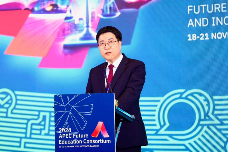 เมื่อวันที่ 20 พ.ย. 67 ศ.ดร.ศุภชัย ปทุมนากุล ปลัดกระทรวงการอุดมศึกษา วิทยาศาสตร์ วิจัยและนวัตกรรม (อว.) เป็นประธานกล่าวต้อนรับในพิธีเปิดงาน The 19th APEC Future Education Forum (AFEF) ซึ่งเป็นการจัดงานร่วมกันระหว่าง อว. และกระทรวงศึกษาธิการแห่งสาธารณรัฐเกาหลี ภายใต้กรอบคณะทำงานด้านการพัฒนาทรัพยากรมนุษย์ของเอเปค (APEC Human Resources Development Working Group) ในหัวข้อหลัก “Fostering Inclusive and Sustainable Talent Development in the Digital Age: Aligning with APEC 2030 Education Strategy” เพื่อเผยแพร่นโยบายด้านการศึกษาและเทคโนโลยีเพื่อการศึกษาในอนาคต ตลอดจนแนวทางการแก้ไขปัญหาและอุปสรรคในการจัดการศึกษาในยุคดิจิทัล มุ่งสู่การพัฒนาคุณภาพการศึกษาอย่างครอบคลุมและยั่งยืน โดยมี Dr. Kim Young-gon, Deputy Minister กระทรวงศึกษาธิการแห่งสาธารณรัฐเกาหลี เป็นประธานร่วมกล่าวเปิดงาน และ Mr. Hahm Jeong-han, Minister and Deputy Chief of Mission สถานเอกอัครราชทูตสาธารณรัฐเกาหลีประจำประเทศไทย ให้เกียรติเข้าร่วมงานและกล่าวขอบคุณ พร้อมมีผู้แทนจากหน่วยงานของรัฐและเอกชนที่เกี่ยวข้องทั้งในและต่างประเทศเข้าร่วม ณ โรงแรมสวิสโซเทล กรุงเทพฯ