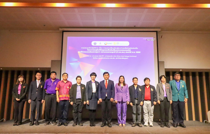 เมื่อวันที่ 24 ม.ค. ดร.พันธุ์เพิ่มศักดิ์ อารุณี ผู้อำนวยการกองขับเคลื่อนและพัฒนาการอุดมศึกษา วิทยาศาสตร์ วิจัยและนวัตกรรม รักษาการในตำแหน่งที่ปรึกษาด้านพัฒนาการอุดมศึกษา วิทยาศาสตร์ วิจัยและนวัตกรรม เป็นประธานเปิดการประชุมเชิงปฏิบัติการ เรื่อง การแลกเปลี่ยนเรียนรู้ระหว่างเครือข่ายเชิงประเด็นโครงการอนุรักษ์พันธุกรรมพืชอันเนื่องมาจากพระราชดำริฯ (เครือข่าย C-อพ.สธ.) จัดโดยมหาวิทยาลัยบูรพา เครือข่ายภาคตะวันออก ระหว่างวันที่ 24-25 มกราคม 2568 ณ โรงแรมพรีมา พัทยา จ.ชลบุรี โดยมี รศ.ดร.วัชรินทร์ กาสลัก อธิการบดีมหาวิทยาลัยบูรพา ดร.ปิยรัษฎ์ ปริญญาพงษ์ เจริญทรัพย์ ผู้ช่วยผู้อำนวยการ อพ.สธ. พร้อมด้วยสถาบันอุดมศึกษาสมาชิก 9 เครือข่ายทั่วประเทศ เข้าร่วมกว่า 200 คน ประกอบด้วย เครือข่ายภาคเหนือตอนบน (มหาวิทยาลัยเชียงใหม่ เป็นสถาบันอุดมศึกษาแม่ข่าย) เครือข่ายภาคเหนือตอนล่าง (มหาวิทยาลัยนเรศวรเป็นสถาบันอุดมศึกษาแม่ข่าย) เครือข่ายภาคตะวันออกเฉียงเหนือตอนบน (มหาวิทยาลัยขอนแก่นเป็นสถาบันอุดมศึกษาแม่ข่าย) เครือข่ายภาคตะวันออกเฉียงเหนือตอนล่าง (มหาวิทยาลัยเทคโนโลยีสุรนารีเป็นสถาบันอุดมศึกษาแม่ข่าย) เครือข่ายภาคกลางตอนบน (จุฬาลงกรณ์มหาวิทยาลัยเป็นสถาบันอุดมศึกษาแม่ข่าย) เครือข่ายภาคกลางตอนล่าง (มหาวิทยาลัยเทคโนโลยีพระจอมเกล้าธนบุรีเป็นสถาบันอุดมศึกษาแม่ข่าย) เครือข่ายภาคตะวันออก (มหาวิทยาลัยบูรพาเป็นสถาบันอุดมศึกษาแม่ข่าย) เครือข่ายภาคใต้ตอนบน (มหาวิทยาลัยวลัยลักษณ์เป็นสถาบันอุดมศึกษาแม่ข่าย) และเครือข่ายภาคใต้ตอนล่าง (มหาวิทยาลัยสงขลานครินทร์เป็นสถาบันอุดมศึกษาแม่ข่าย) โอกาสนี้ รศ.ดร.ยุทธนา ฉัพพรรณรัตน์ ประธานเครือข่าย C-อพ.สธ. ภาคกลางตอนบน ได้รับมอบธงเจ้าภาพ สำหรับการจัดกิจกรรมแลกเปลี่ยนเรียนรู้ฯ ในปี พ.ศ. 2569