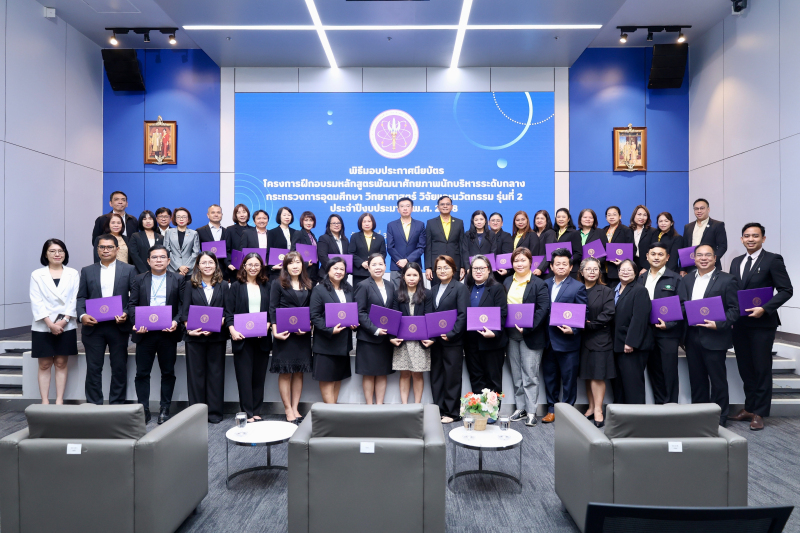 เมื่อวันที่ 30 มิ.ย. ศ.ดร.ศุภชัย ปทุมนากุล ปลัดกระทรวงการอุดมศึกษา วิทยาศาสตร์ วิจัยและนวัตกรรม (อว.) เป็นประธานในพิธีปิด ”โครงการฝึกอบรมหลักสูตรพัฒนาศักยภาพนักบริหารระดับกลางกระทรวงการอุดมศึกษา วิทยาศาสตร์ วิจัยและนวัตกรรม (นบก.อว.) รุ่นที่ 2 ประจำปีงบประมาณ พ.ศ. 2568“ จัดขึ้น โดย กลุ่มบริหารทรัพยากรบุคคล โดยมี นางสาวสุณีย์ เลิศเพียรธรรม รองปลัดกระทรวง อว. นายวันชัย สุวรรณหงษ์ รองอธิบดีกรมวิทยาศาสตร์บริการ นางสาวประวีณา สว่างจิตต์ ผู้อำนวยการกลุ่มบริหารทรัพยากรบุคคล ผู้บริหารและบุคลากรจากหน่วยงานในสังกัดกระทรวง อว. เข้าร่วม ณ ห้องแถลงข่าวชั้น 1 อาคารพระจอมเกล้า สำนักงานปลัดกระทรวง อว.