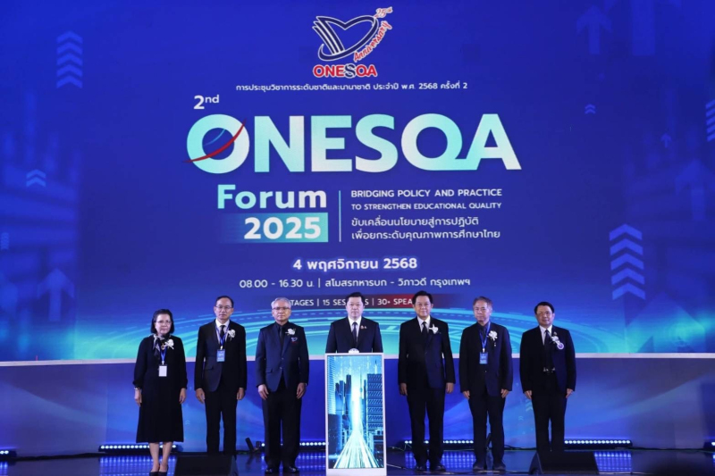 เมื่อวันที่ 4 พฤศจิกายน ดร.วันนี นนท์ศิริ ผู้ตรวจราชการกระทรวงการอุดมศึกษา วิทยาศาสตร์ วิจัยและนวัตกรรม (อว.) เข้าร่วมการประชุมวิชาการระดับชาติและนานาชาติ “2025 ONESQA Forum ครั้งที่ 2” ภายใต้หัวข้อ “Bridging Policy and Practice to Strengthen Educational Quality” ซึ่งจัดขึ้นเนื่องในโอกาสครบรอบ 25 ปี สำนักงานรับรองมาตรฐานและประเมินคุณภาพการศึกษา (สมศ.) โดยมี นายศุภชัย เจียรวนนท์ ประธานกรรมการสำนักงานรับรองมาตรฐานและประเมินคุณภาพการศึกษา เป็นประธานเปิดงาน พร้อมด้วยผู้บริหาร สมศ. ผู้แทนหน่วยงานภาครัฐ ภาคการศึกษา และผู้ทรงคุณวุฒิจากทั้งในและต่างประเทศ เข้าร่วมแลกเปลี่ยนความคิดเห็นอย่างคับคั่ง ณ สโมสรทหารบก ถนนวิภาวดีรังสิต กรุงเทพมหานคร