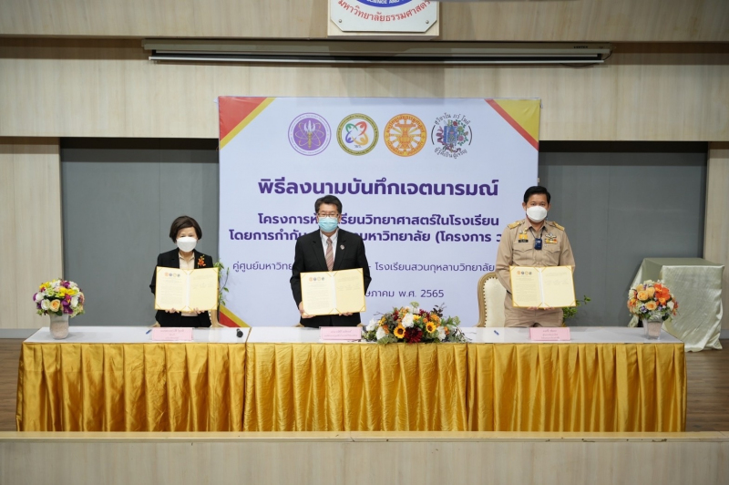 เมื่อวันที่ 23 พฤษภาคม 2655  รศ.ดร.พาสิทธิ์ หล่อธีรพงศ์ รองปลัด อว. พร้อมด้วย รศ.ดร.เกศินี วิฑูรชาติ อธิการบดีมหาวิทยาลัยธรรมศาสตร์ และ นายชาลี วัฒนเขจร ผู้อำนวยการโรงเรียนสวนกุหลาบวิทยาลัย รังสิต ได้ร่วมลงนามในบันทึกแสดงเจตนารมณ์ เพื่อร่วมมือกันในการพัฒนาโครงการ วมว. คู่ศูนย์มหาวิทยาลัยธรรมศาสตร์ เพื่อยกระดับคุณภาพการจัดการเรียนการสอน และการพัฒนาศักยภาพจของนักเรียนในโครงการ วมว ร่วมกันในทุกมิติ