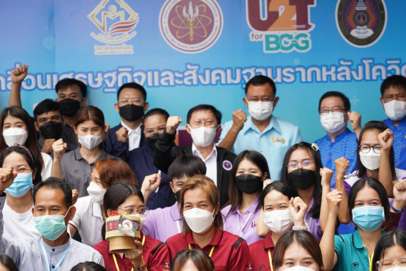จากนั้น รศ.ดร.ภาสกร นันทพานิช รองอธิการบดี มรภ.อุบลราชธานี กล่าวว่า มรภ.อุบลราชธานี รับผิดชอบ 3 จังหวัด คือ อุบลราชธานี อำนาจเจริญและยโสธร ในยโสธรรับผิดชอบ 29 ตำบล โครงการ U2T for BCG ก่อให้เกิดรายได้ในพื้นที่ต่อเดือนประมาณ 20 ล้านบาท จากการจับจ่ายใช้สอยของผู้เข้าร่วมโครงการ รวมทั้งก่อให้เกิดผลกระทบทางเศรษฐกิจในด้านอื่นอีกมากมาย ซึ่งผลประโยชน์จะไปตกอยู่กับชุมชน ในพื้นที่มีการดำเนินการด้านเกษตร ด้านการแปรรูปสินค้าเกษตรเป็นอาหาร ด้านสมุนไพรและการจัดการขยะ เป็นต้น