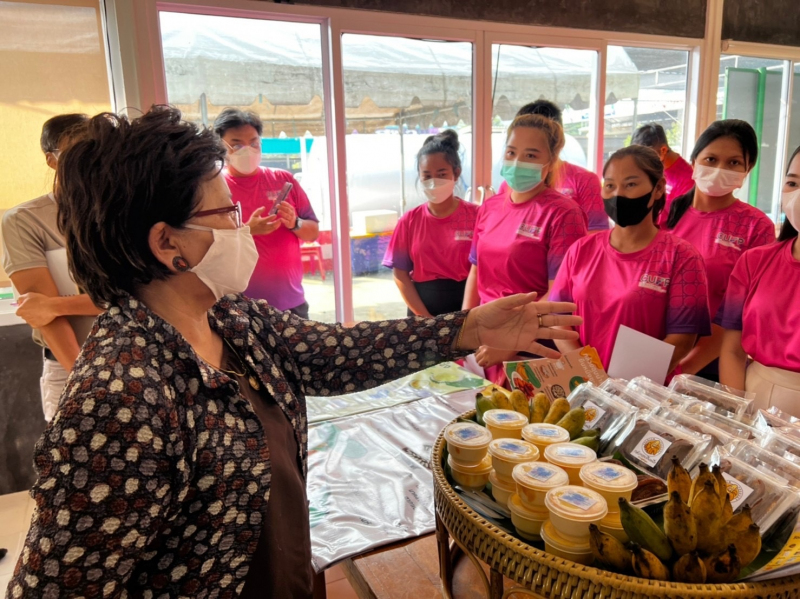 จากนั้นนางสุวรรณี คำมั่น ที่ปรึกษารัฐมนตรีกระทรวงการอุดมศึกษา วิทยาศาสตร์วิจัยและนวัตกรรมเดิน ทางไปยัง หอประชุมองค์การบริหารส่วนตำบลชะอม อำเภอแก่งคอย จังหวัดสระบุรี เพื่อรับฟังอาจารย์และผู้เข้าร่วมโครงการจากกลุ่มวิสาหกิจชุมชนท่องเที่ยวเชิงอนุรักษ์ บ้านบึงไม้ ตำบลชะอม นำเสนอผลการดำเนินโครงการสำหรับการดำเนินงานในพื้นที่ชุมชนท่ามะปราง เป็นการดำเนินการใน 1 โครงการ ได้แก่ โครงการ “ปลาดุกแดดเดียวอบสมุนไพร” ภายใต้แบรนด์ “คุณกำไร” เป็นพัฒนาสินค้าของกลุ่มวิสาหกิจชุมชนสู่การเดิบโตทางการตลาดทั้งการขายในแบบออฟไลน์ในชุมชนและพื้นที่ใกล้เคียงและบนแพลทฟอร์มออนไลน์ที่ตอบโจทย์กลุ่มลูกค้าในยุคปัจจุบัน เนื่องจากได้มีการออกแบบสินค้าและผลิตภัณฑ์ รับปลาดุกแดดเดียวอบสมุนไพร มาจากกลุ่มวิสาหกิจชุมชน บ้านท่ามะปราง มาพัฒนาบรรจุภัณฑ์พร้อมออกแบบโลโก้ที่น่าสนใจ สื่อถึงสินค้าประจำตำบล ท่ามะปราง และได้มีการนำปลาใส่ในบรรจุภัณฑ์แบบในสาาวะสูญญากาศพร้อมทั้งติดสติ๊กเกอร์โลโก้ ต่อมาเป็นการดำเนินงานในพื้นที่ชุมชนตำบลชะอม เป็นการดำเนินการใน 2 โครงการ ได้แก่ โครงการ “ไอติมทุเรียนไข่แข็ง” ภายใต้แบรนด์ “Hiso Cha-Om” สำหรับโครงการที่สองเป็น โครงการ “กล้วยอบน้ำผึ้ง”ภายใต้แบรนด์“กล้วยอบยืนหนึ่ง”ซึ่งทั้งสองโครงการเป็นการและสร้างงานและรายได้ให้กับคนในชุมชนอย่างยั่งยืน