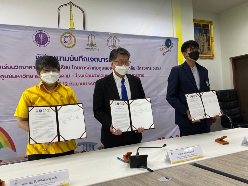 รองปลัดกระทรวงการอุดมศึกษาฯ กล่าวถึงวัตถุประสงค์และเป้าหมายการพัฒนาโครงการ วมว. ระยะที่ 3 แก่คู่ศูนย์ มมส. ให้มุ่งเน้นส่งเสริมการเรียนการสอนในด้านวิทยาศาสตร์และเทคโนโลยี การสร้างองค์ความรู้เพื่อพัฒนาให้นักเรียนเป็นนักวิทยาศาสตร์ นักวิจัย นักเทคโนโลยีและนวัตกร ที่มีความสุขทั้งกายและใจ จึงเป็นจุดเริ่มต้นการลงนามบันทึกแสดงเจตนารมณ์การดำเนินงานโครงการ วมว. ระยะที่ 3 ร่วมกับ รศ.ดร.เภสัชกรหญิงจันทร์ทิพย์ กาญจนศิลป์ รองอธิการบดีฝ่ายวิชาการและนวัตกรรมการเรียนรู้ และรศ. ดร.ชัยสิทธิ์ สิทธิเวช ผู้อำนวยการโรงเรียนสาธิตมหาวิทยาลัยมหาสารคาม (ฝ่ายมัธยม) ในการกำหนดทิศทางเป้าหมายของโครงการที่ชัดเจนไปในทิศทางเดียวกัน อย่างไรก็ตาม คู่ศูนย์มมส. ได้น้อมรับนโยบายของ อว. ในการพัฒนานักเรียน วมว. ให้เป็นนักวิจัยและนวัตกรที่เป็นทั้งคนดี และคนเก่ง เพื่อเป็นกำลังสำคัญในการส่งเสริมศักยภาพของประเทศต่อไปในอนาคต