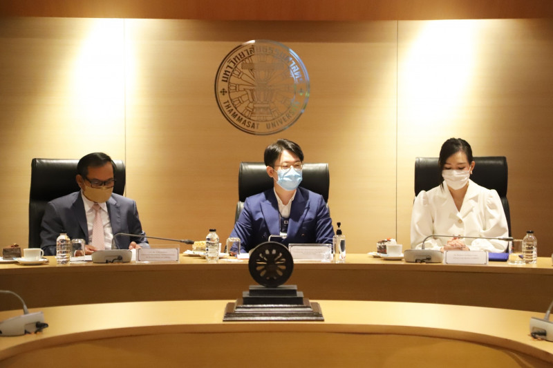 เมื่อวันที่ 16 ก.ย. 2565 ดร.พัชรินรุจา จันทโรนานนท์ ที่ปรึกษารัฐมนตรีว่าการกระทรวงการอุดมศึกษา วิทยาศาสตร์ วิจัยและนวัตกรรม พร้อมด้วย นายอูก ซอร์พวน (H.E.Mr. OukSorphorn) เอกอัครราชทูตกัมพูชาประจำประเทศไทยได้นำคณะทำงานส่งเสริมกิจการนักศึกษาต่างชาติ และผู้แทนจากสถานเอกอัครราชทูตกัมพูชาประจำประเทศไทย ลงพื้นที่เยี่ยม มหาวิทยาลัยธรรมศาสตร์ (ศูนย์รังสิต) เพื่อรับฟังนโยบายการบริหารจัดการนักศึกษาต่างชาติ รวมถึงปัญหาอุปสรรคในการดำเนินงานของการดูแลนักศึกษาต่างชาติ โดยมี รศ.ดร.สุรัตน์ ทีรฆาภิบาล รองอธิการบดีฝ่ายบริหารท่าพระจันทร์และวิเทศสัมพันธ์ อ.ทพญ.สิริภัทรา พัชนี ผู้ช่วยอธิการบดีฝ่ายวิเทศสัมพันธ์ ผู้บริหาร อาจารย์ และนักศึกษาต่างชาติ เข้าร่วมให้ข้อมูลและแลกเปลี่ยนความคิดเห็นในเรื่องของการดูแลนักศึกษาต่างชาติ