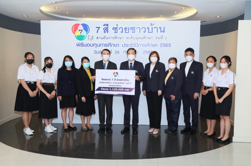 ศาสตราจารย์ ดร.สัมพันธ์ ฤทธิเดช เลขาธิการคณะกรรมการการอุดมศึกษา กล่าวว่า ในนามสำนักงานปลัดกระทรวงการอุดมศึกษา วิทยาศาสตร์ วิจัยและนวัตกรรม ขอขอบคุณบริษัท กรุงเทพโทรทัศน์และวิทยุ จำกัด ที่เล็งเห็นและตระหนักถึงความสำคัญของการศึกษา โดยให้ความช่วยเหลือ ส่งเสริมและสนับสนุนทุนการศึกษาให้กับนักเรียนใน “โครงการ 7 สี ช่วยชาวบ้าน สานฝันการศึกษา "ระดับอุดมศึกษา" รุ่นที่ 2" ที่มีความประพฤติดี ขาดแคลนทุนทรัพย์ ซึ่งในปีการศึกษา 2565 มีนิสิต นักศึกษาที่ยังคงสถานภาพของผู้รับทุนการศึกษา จำนวน 28 ทุนๆ ละ 40,000 บาท (สี่หมื่นบาทถ้วน) รวมจำนวนเงินทุนทั้งสิ้น 1,120,000 บาท (หนึ่งล้านหนึ่งแสนสองหมื่นบาทถ้วน) การมอบเงินทุนการศึกษาโครงการ 7 สี ช่วยชาวบ้าน สานฝันการศึกษา"ระดับอุดมศึกษา" รุ่นที่ 2" ในครั้งนี้ นับได้ว่าเป็นประโยชน์อย่างยิ่งในการสนับสนุนให้นิสิตนักศึกษามีกำลังใจในการศึกษาเล่าเรียน เพื่อให้สำเร็จการศึกษาพร้อมที่จะเป็นบัณฑิตที่มีคุณภาพ และเป็นกำลังสำคัญในการพัฒนาประเทศชาติต่อไป