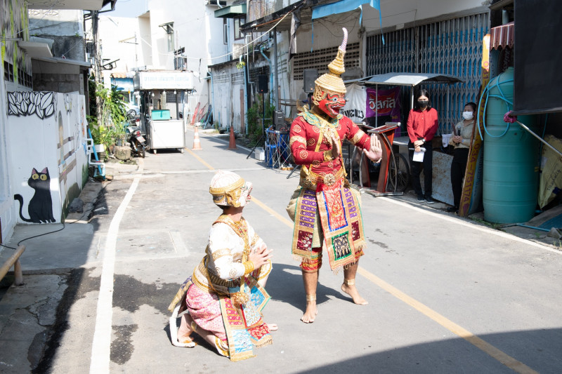(25 ตุลาคม 2565) ณ ตลาดน้ำอัมพวา เทศบาลตำบลอัมพวา อำเภออัมพวา จังหวัดสมุทรสงคราม - ดร.ดนุช ตันเทอดทิพย์ เลขานุการรัฐมนตรีว่าการทระทรวงการอุดมศึกษา วิทยาศาสตร์ วิจัยและนวัตกรรม (อว.) เป็นประธานพิธีเปิดและส่งมอบผลงานกิจกรรม MHESI Street Art สร้างสรรค์ผลงานนวัตกรรมสู่อัตลักษณ์ท้องถิ่น ภายใต้โครงการพัฒนาผลิตภัณฑ์สินค้าชุมชน ปีงบประมาณ พ.ศ. 2565 โดยมี ดร.ชลากร อุดมรักษาสกุล ผู้อำนวยการสถาบันวิจัยและพัฒนา มหาวิทยาลัยเทคโนโลยีราชมงคล (มทร.) พระนคร ในฐานะสถาบันอุดมศึกษาที่เป็นเจ้าภาพจัดงานครั้งนี้ ร่วมด้วยผู้บริหาร มทร.พระนคร นายกฤษฎี กลิ่นจงกล นายกเทศมนตรีตำบลอัมพวา คณะทำงานโครงการ MHESI Street Art และประชาชนในชุมชนพื้นที่ตลาดน้ำอัมพวา ร่วมในงาน พร้อมรับการแสดงโขน โดย ชมรมศิลปวัฒนธรรมอัมพวา
