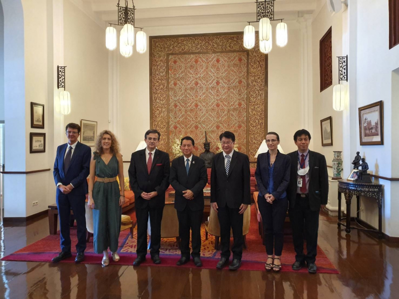 เมื่อวันที่ 25 พฤศจิกายน 2565 ศ.ดร.นพ.สิริฤกษ์ ทรงศิวิไล ปลัดกระทรวงการอุดมศึกษา วิทยาศาสตร์ วิจัยและนวัตกรรม พร้อมด้วย รศ.ดร.พาสิทธิ์ หล่อธีรพงศ์ รองปลัดกระทรวงการอุดมศึกษา วิทยาศาสตร์ วิจัยและนวัตกรรม นายตติยะ ชื่นตระกูล รองผู้อำนวยการสำนักงานพัฒนาเทคโนโลยีอวกาศและภูมิสารสนเทศ และเจ้าหน้าที่กองการต่างประเทศ ได้ร่วมหารือกับนายตีแยรี มาตู (H.E. Mr. Thierry Mathou) เอกอัครราชทูตฝรั่งเศสประจำประเทศไทย และผู้แทนจากหน่วยงาน Business France ณ ทำเนียบเอกอัครราชทูตฝรั่งเศส เพื่อหารือเกี่ยวกับการจัดกิจกรรมเนื่องในปีแห่งนวัตกรรมไทย-ฝรั่งเศส 2566 (Thai-French Year of Innovation 2023) และความร่วมมือด้านอุดมศึกษา วิทยาศาสตร์ วิจัยและนวัตกรรม