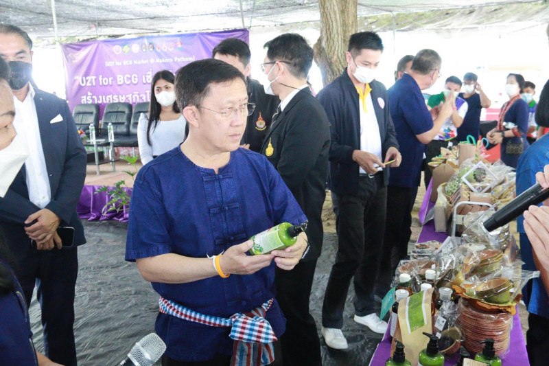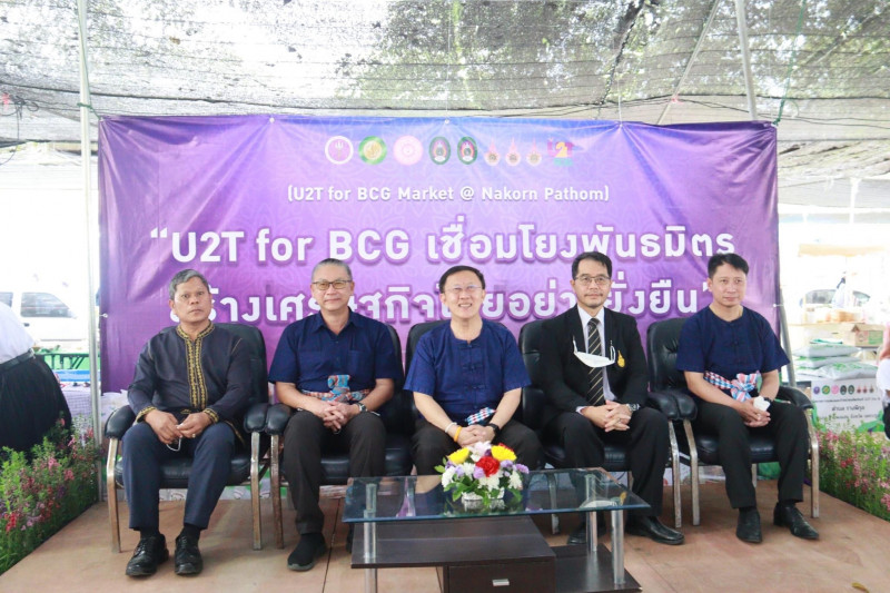 ด้าน รศ.นสพ.ดร.อนุชัย ภิญโญภูมิมินทร์ รองอธิการบดีวิทยาเขตกำแพงแสน กล่าวว่า งานตลาดนัดผลผลิตจากตำบลสู่ประชาคมอย่างยั่งยืน จังหวัดนครปฐม U2T for BCG เชื่อมโยงพันธมิตร สร้างเศรษฐกิจไทยอย่างยั่งยืน มีวัตถุประสงค์เพื่อให้ผู้ประกอบการใน จังหวัดนครปฐม ภายใต้โครงการ U2T for BCG มีช่องทางและประสบการณ์ในการขายสินค้า รวมถึงเป็นการประชาสัมพันธ์สินค้าของตนให้เป็นที่รู้จัก โดยงานดังกล่าวมีตำบลที่เข้าร่วมกิจกรรม จำนวน 36 ตำบล มีสินค้าและผลิตภัณฑ์กว่า 50 รายการ และคาดว่าจะมีผู้เข้าร่วมงาน 50,000 - 100,000 ราย