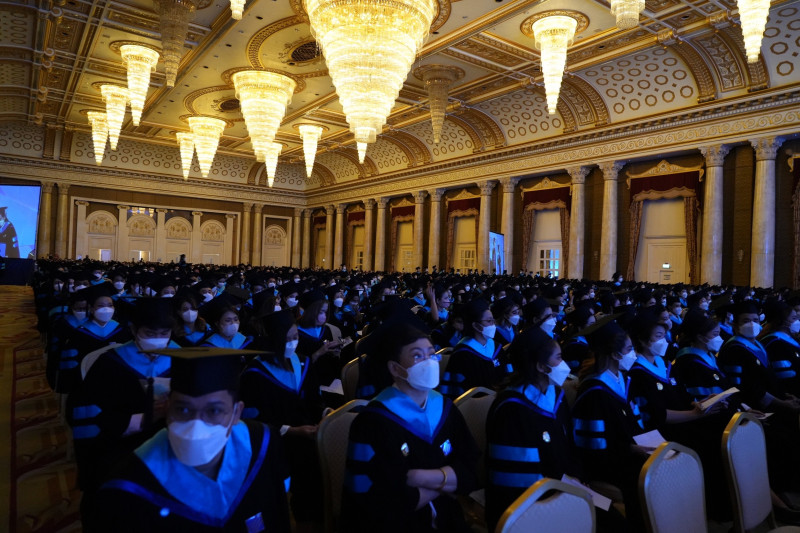 ดร.อภิเทพ กล่าวว่า ในปีการศึกษานี้ มีบัณฑิต/มหาบัณฑิตสำเร็จการศึกษารวม 1,360 คน จากหลากหลายประเทศมากถึง 46 ประเทศ ถือได้ว่าเป็นความสำเร็จในพันธกิจที่สำคัญของมหาวิทยาลัย ด้าน “Internationality” ความเป็นนานาชาติ และดร.ดนุช กล่าวถึงนโยบายและทิศทางของกระทรวงอุดมศึกษาฯ ในการยกระดับการศึกษาไทยสู่ความเป็นนานาชาติระดับสากลว่า สถาบันอุดมศึกษาไทยต้องพิจารณาส่งเสริมการแลกเปลี่ยนด้านการวิจัย แลกเปลี่ยนคณาจารย์ และผู้เชี่ยวชาญจากต่างประเทศ ให้มากยิ่งขึ้น และในช่วง 2-3 ปีที่ผ่านมาเรามีนักศึกษาต่างชาติเข้ามาเรียนในประเทศไทยมากขึ้น ถือเป็นโอกาสและทิศทางที่ดีของสถาบันอุดมศึกษาไทยในการยกระดับคุณภาพการศึกษาสู่ระดับสากลเพื่อให้ประเทศไทยก้าวสู่การเป็นศูนย์กลางด้านการศึกษาในภูมิภาคต่อไป