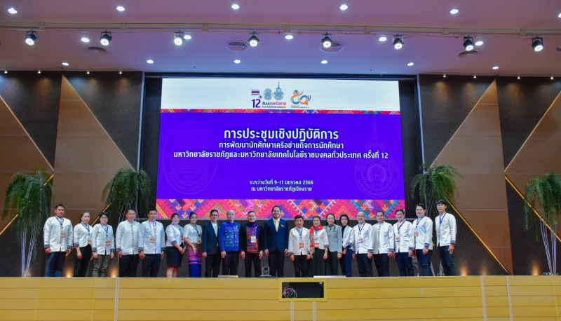9 มกราคม 2566 ดร.ลัทธจิตร มีรักษ์ ผู้ช่วยรัฐมนตรีประจำกระทรวง อว. เป็นประธานเปิดการประชุมเชิงปฏิบัติการการพัฒนานักศึกษาเครือข่ายกิจการนักศึกษามหาวิทยาลัยราชภัฏและมหาวิทยาลัยเทคโนโลยีราชมงคลทั่วประเทศ ครั้งที่ 12 ณ มหาวิทยาลัยราชภัฏเชียงราย (มร.ชร.) โดยผู้ช่วยศาสตราจารย์ ดร.ศรชัย มุ่งไธสง อธิการบดีมหาวิทยาลัยราชภัฏเชียงราย กล่าวรายงานและกล่าวต้อนรับผู้เข้าร่วมการประชุมสู่มหาวิทยาลัยราชภัฏเชียงราย