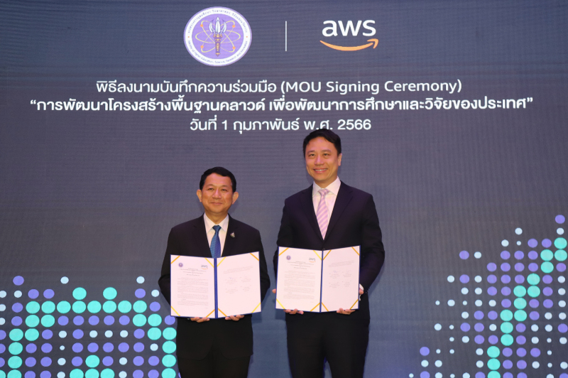 วันที่ 1 กุมภาพันธ์ 2566 กระทรวงการอุดมศึกษา วิทยาศาสตร์ วิจัยและนวัตกรรม (อว.) ลงนามในบันทึกความร่วมมือ กับ Amazon Web Services (AWS) ซึ่งเป็นบริการคลาวด์ที่ครอบคลุมและได้รับการยอมรับมากที่สุดในโลก เพื่อพัฒนาโครงสร้างพื้นฐานและบุคลากรด้านเทคโนโลยีคลาวด์ของกระทรวงฯ เพื่อนำไปสู่การเปลี่ยนแปลงทางดิจิทัลของประเทศไทย โดยมี ศ.ดร.นพ.สิริฤกษ์ ทรงศิวิไล ปลัดกระทรวงการอุดมศึกษา วิทยาศาสตร์ วิจัยและนวัตกรรม เป็นผู้ลงนามร่วมกับ จูเลี่ยน เลา ผู้จัดการฝ่ายขายกลุ่มลูกค้าภาครัฐ ภาคพื้นเอเซียตะวันออกเฉียงใต้ของ Amazon Web Services พร้อมด้วย ศ.ดร. ศุภชัย ปทุมนากุล รองปลัดกระทรวง อว. ดร.จันทร์เพ็ญ เมฆาอภิรักษ์ ผู้ตรวจราชการกระทรวง อว. และผู้บริหารกระทรวง อว. เข้าร่วมงาน
