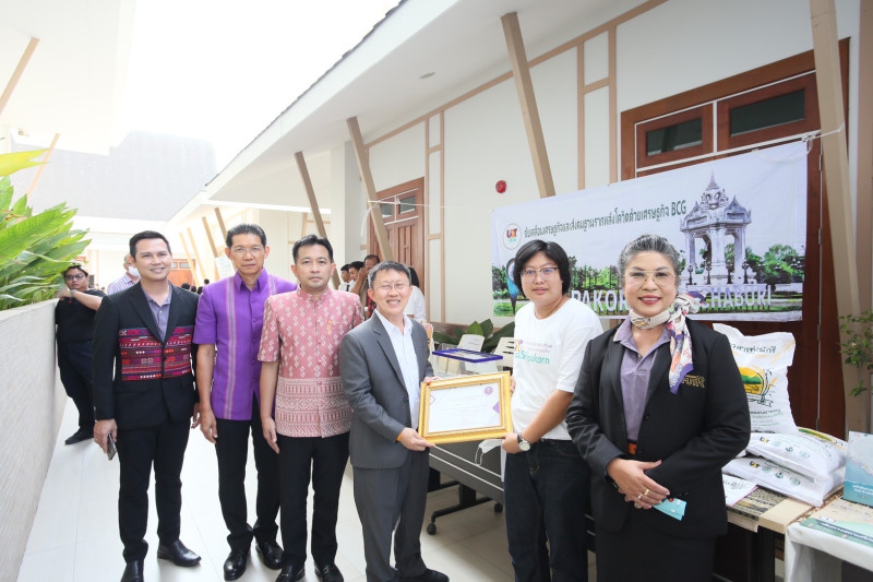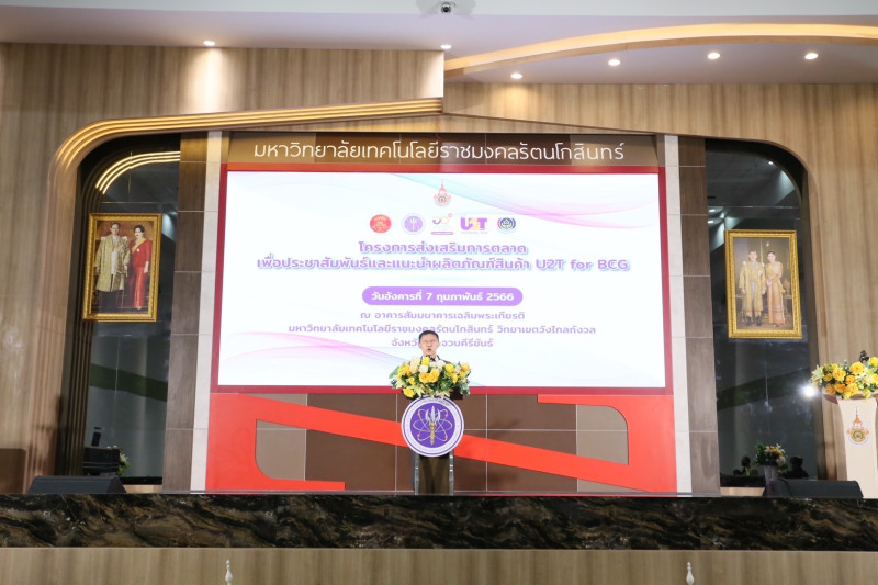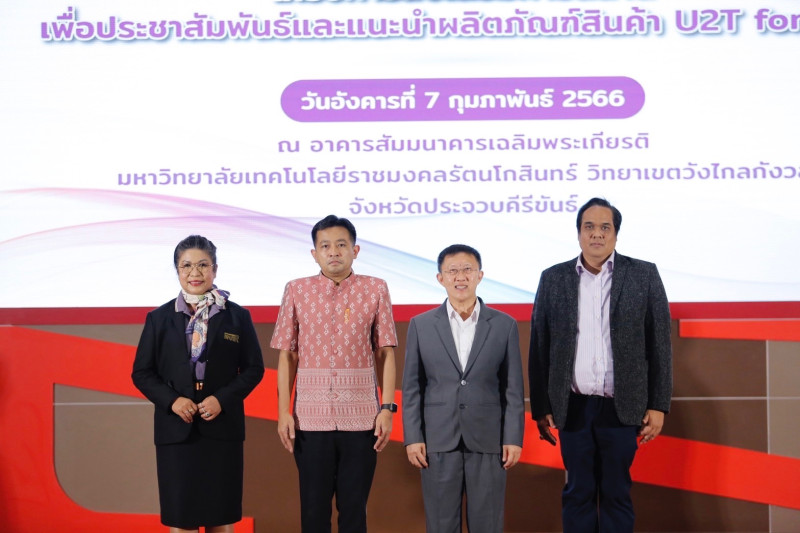 เมื่อวันที่ 7 กุมภาพันธ์ 2566 ดร.ดนุช ตันเทอดทิตย์ เลขานุการรัฐมนตรีว่าการกระทรวงการอุดมศึกษา วิทยาศาสตร์ วิจัยและนวัตกรรม (อว.) พร้อมด้วย นายพันธุ์เพิ่มศักดิ์ อารุณี หัวหน้ากลุ่มภารกิจบริหารยุทธศาสตร์ สำนักปลัดกระทรวงการอุดมศึกษา วิทยาศาสตร์ วิจัยและนวัตกรรม (สป.อว.) ร่วมงานกิจกรรมโครงการส่งเสริมการตลาดเพื่อประชาสัมพันธ์และแนะนำผลิตภัณฑ์สินค้า U2T for BCG โดยได้รับการต้อนรับจาก นายองครักษ์ ทองนิรมล รองผู้ว่าราชการจังหวัดประจวบคีรีขันธ์, ผศ.นภาพร นาคทิม รองอธิการบดีประจำวิทยาเขตวังไกลกังวล ณ อาคารสัมมนาคารเฉลิมพระเกียรติ มหาวิทยาลัยเทคโนโลยีราชมงคลรัตนโกสินทร์ วิทยาเขตวังไกลกังวล จ.ประจวบคีรีขันธ์