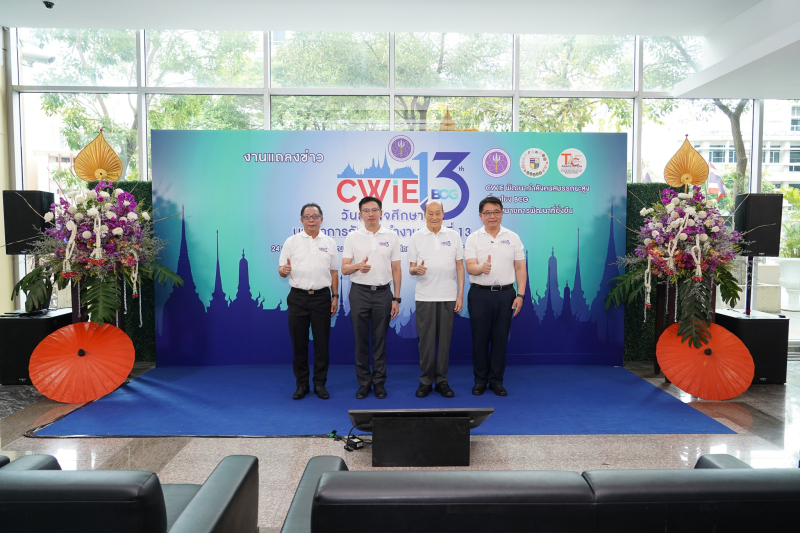 วันที่ 24 พ.ค. ศ.ดร.ศุภชัย ปทุมนากุล รองปลัดกระทรวงการอุดมศึกษา วิทยาศาสตร์ วิจัยและนวัตกรรม (อว.) เป็นประธานแถลงข่าววันสหกิจศึกษาบูรณาการกับการทำงาน (CWIE DAY) ครั้งที่ 13 ภายใต้แนวคิด “CWIE พัฒนากำลังคนสมรรถนะสูง เชื่อมโยง BCG สู่เป้าหมายการพัฒนาที่ยั่งยืน” พร้อมด้วย ศ.ดร.วิจิตร ศรีสอ้าน นายกสมาคมสหกิจศึกษาไทย ดร.พรชัย มงคลวนิช อธิการบดีมหาวิทยาลัยสยามและประธานเครือข่าย CWIE ภาคกลางตอนล่าง และ รศ.ดร.อุดมวิทย์ ไชยสกุลเกียรติ อธิการบดีมหาวิทยาลัยเทคโนโลยีราชมงคลรัตนโกสินทร์ ร่วมแถลงข่าว ณ โถงอาคารอุดมศึกษา 2 สำนักงานปลัดกระทรวงการอุดมศึกษา วิทยาศาสตร์ วิจัยและนวัตกรรม (ถนนศรีอยุธยา)