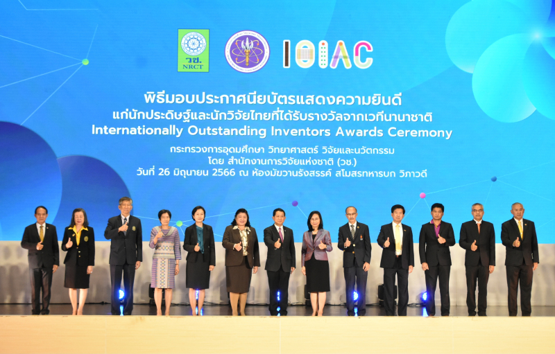 วันที่ 26 มิถุนายน 2566 กระทรวงการอุดมศึกษา วิทยาศาสตร์ วิจัยและนวัตกรรม โดย สำนักงานการวิจัยแห่งชาติ (วช.) จัดพิธีมอบประกาศนียบัตรแสดงความยินดีแก่นักประดิษฐ์และนักวิจัยไทยที่ได้รับรางวัลจากเวทีนานาชาติ เพื่อประกาศเกียรติคุณแก่นักประดิษฐ์และนักวิจัยไทยที่ได้รับรางวัลจากการนำผลงานวิจัยและนวัตกรรมไปประกวดเวทีนานาชาติ กว่า 261 ผลงานใน 5 เวทีจาก 5 ประเทศ โดยมี ศาสตราจารย์สิริฤกษ์ ทรงศิวิไล ปลัดกระทรวงการอุดมศึกษา วิทยาศาสตร์ วิจัยและนวัตกรรม เป็นประธานในพิธีฯ และปาฐกถาพิเศษ ในหัวข้อ “สิ่งประดิษฐ์และนวัตกรรมไทยก้าวไกลระดับโลก” โดย ดร.วิภารัตน์ ดีอ่อง ผู้อำนวยการสำนักงานการวิจัยแห่งชาติ กล่าวรายงาน ณ ห้องมัฆวานรังสรรค์ ชั้น 3 สโมสรทหารบก ถนนวิภาวดีรังสิต กรุงเทพมหานคร