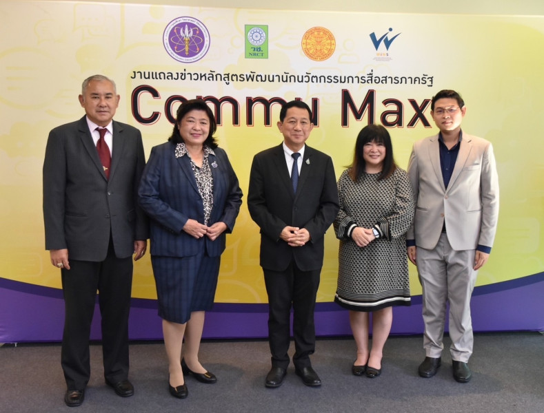 วันที่ 18 กรกฎาคม 2566 กระทรวงการอุดมศึกษา วิทยาศาสตร์ วิจัยและนวัตกรรม โดย สำนักงานการวิจัยแห่งชาติ (วช.) จัดงานแถลงข่าว เปิดตัวหลักสูตรพัฒนานักนวัตกรรมการสื่อสารภาครัฐ COMMU MAX โดย ศ.นพ.สิริฤกษ์ ทรงศิวิไล ปลัดกระทรวงการอุดมศึกษา วิทยาศาสตร์ วิจัยและนวัตกรรม ประธานในพิธีกล่าวเปิดงานและเปิดตัวหลักสูตรพัฒนานักนวัตกรรมการสื่อสารภาครัฐ COMMU MAX พร้อมกล่าวถึงการผลักดันวิสัยทัศน์ของกระทรวง อว. และการนำไปปรับใช้กับโครงการอื่น ๆ ต่อในอนาคต โดยมี ดร.วิภารัตน์ ดีอ่อง ผู้อำนวยการสำนักงานการวิจัยแห่งชาติ กล่าวรายงานถึง พันธกิจและวิสัยทัศน์ของกระทรวง อว. และที่มาของโครงการและหลักสูตร Commu Max พร้อมด้วย ดร.ธันยพร สุนทรธรรม ผู้ช่วยอธิการบดี (ฝ่ายการนักศึกษา) มหาวิทยาลัยธรรมศาสตร์ และผู้อำนวยการ TUXSA MBA (Business Innovation) หัวหน้าโครงการวิจัย ซึ่งมีคณะผู้บริหาร ผู้เข้าร่วมอบรมจากหน่วยงานต่าง ๆ ในสังกัดกระทรวง อว. และสื่อมวลชนเข้าร่วม ณ ชั้น 1 อาคาร วช. 8. สำนักงานการวิจัยแห่งชาติ (วช.)