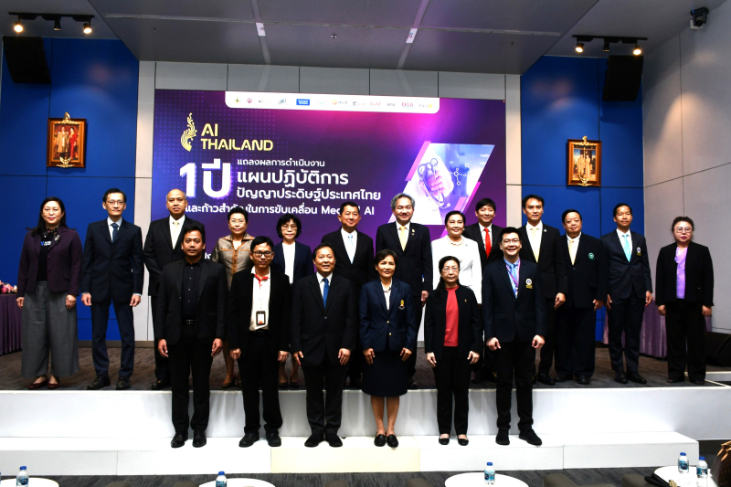ขณะที่ ศ.ดร.ชูกิจ กล่าวว่า ตลอด 1 ปีที่ผ่านมา มีผลการดำเนินงานที่สำคัญในด้านต่าง ๆ 1. ด้านจริยธรรมและธรรมาภิบาล มีการจัดทำคู่มือจริยธรรม AI เล่มแรกของไทย การจัดหลักสูตรจริยธรรมที่เรียนรู้ได้ด้วยตนเอง และการเปิดตัวศูนย์ธรรมาภิบาลปัญญาประดิษฐ์ เพื่อส่งเสริมให้เกิดการใช้ AI อย่างถูกต้องและมีความรับผิดชอบ 2. ด้านโครงสร้างพื้นฐาน มีการพัฒนาแพลตฟอร์มกลางบริการ AI บนคลาวด์ภาครัฐ (GDCC) รวมทั้งเปิดให้บริการ LANTA ซูเปอร์คอมพิวเตอร์ที่มีประสิทธิภาพการคำนวณอันดับ 1 ในอาเซียน และอันดับที่ 70 ของโลก สำหรับการวิจัยและพัฒนาของภาครัฐและเอกชน 3. ด้านการพัฒนากำลังคน ขณะนี้คณะอนุกรรมการขับเคลื่อนการพัฒนากำลังคนด้าน AI ได้เห็นชอบภาพรวมข้อเสนอการพัฒนากำลังคนด้าน AI เพื่อสร้างบุคลากรที่มีทักษะความรู้ความเชี่ยวชาญด้าน AI ในทุกระดับและทุกสาขาตรงตามความต้องการของเอกชน  4. ด้านนวัตกรรมและการประยุกต์ใช้ มีหน่วยงานภาครัฐใน 76 จังหวัด นำระบบวิเคราะห์เพื่อสนับสนุนการแก้ปัญหาความยากจนแบบชี้เป้า เข้าไปขับเคลื่อนการขจัดความยากจนและพัฒนาคนทุกช่วงวัย ทั้งนี้จากการดำเนินงานขับเคลื่อนตามแผนยุทธศาสตร์ในด้านต่าง ๆ ส่งผลให้ปัจจุบันมีบุคลากรเข้ารับการอบรมในโครงการและหลักสูตร AI  จำนวน 83,721 คน มีโครงการวิจัยและพัฒนาด้าน AI ในกองทุนวิจัยมูลค่า 1,290 ล้านบาท มีสตาร์ตอัปลงทุนเพิ่มจากการส่งเสริมของรัฐมูลค่า 639 ล้านบาท และที่สำคัญคือจากการจัดอันดับดัชนีความพร้อมด้านปัญญาประดิษฐ์ของรัฐบาล (AI Government Readiness Index) ประเทศไทยเลื่อนอันดับขึ้นจาก 59 เป็น 31 ทันทีที่มีแผนปฏิบัติการ AI ในปีที่ผ่านมา