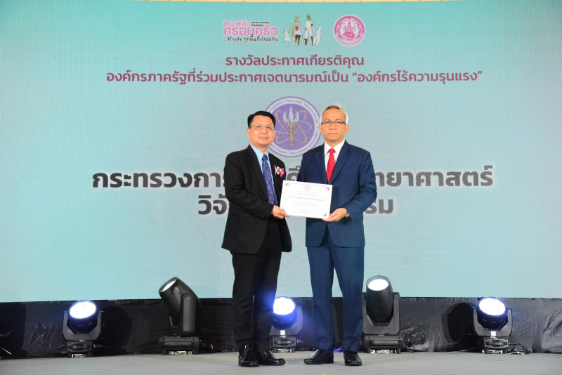 เมื่อวันอังคารที่ 5 กันยายน 2566 ปลัดกระทรวงการอุดมศึกษา วิทยาศาสตร์ วิจัยและนวัตกรรม (ศาสตราจารย์สิริฤกษ์ ทรงศิวิไล) ได้มอบหมายให้ผู้ช่วยปลัดกระทรวงการอุดมศึกษาฯ (นายวันนี นนท์ศิริ) พร้อมด้วยเจ้าหน้าที่กลุ่มบริหารทรัพยากรบุคคล เข้าร่วมพิธีมอบประกาศเกียรติคุณในการร่วมโครงการประกาศเจตนารมณ์เป็น “องค์กรไร้ความรุนแรง” และร่วมประกาศเจตนารมณ์การขับเคลื่อนมติสมัชชาครอบครัวระดับชาติ ประจำปี 2566 “สานพลังสร้างสภาพแวดล้อมที่เป็นมิตรต่อครอบครัว : สร้างสุข ทุกพื้นที่ปลอดภัย” ในการประชุมสมัชชาครอบครัวระดับชาติ ประจำปี 2566 ณ ห้องประชุมกษัตริย์ศึก ชั้น 4 โรงแรมเดอะทวิน ทาวเวอร์ กรุงเทพมหานคร จัดขึ้นโดยกระทรวงการพัฒนาสังคมและความมั่นคงของมนุษย์ (พม.) กรมกิจการสตรีและสถาบันครอบครัว (สค.) โดยมีนายอนุกูล ปีดแก้ว ปลัดกระทรวงการพัฒนาสังคมและความมั่นคงของมนุษย์ เป็นประธานในพิธีเปิดและปาฐกถาพิเศษ ในการประชุมดังกล่าว โดยมี นางจินตนา จันทร์บำรุง อธิบดีกรมกิจการสตรีและสถาบันครอบครัว กล่าวรายงาน วัตถุประสงค์เพื่อผนึกกำลังความร่วมมือการขับเคลื่อนการดำเนินงานด้านครอบครัว เกิดการบูรณาการเชื่อมโยงเครือข่ายเป็นกลไกทางสังคม ในทุกพื้นที่ ทั้งบ้าน สถานศึกษา สถานที่ทำงาน พื้นที่สาธารณะ ชุมชนและท้องถิ่น ในการสร้างสภาพแวดล้อมที่เป็นมิตรต่อครอบครัว และพร้อมสำหรับการขับเคลื่อนแผนขับเคลื่อนมติสมัชชาครอบครัวระดับชาติ ประจำปี 2565 ระยะ 3 ปี (พ.ศ. 2566 - 2568) เพื่อการทำงานด้านครอบครัวในทุกมิติ ทุกลักษณะที่มีความสอดคล้องกับบริบท ปัญหา และความต้องการของประชาชนในแต่ละพื้นที่ โดยกิจกรรมภายในงานได้แก่ การมอบรางวัลประกาศเกียรติคุณองค์กรและสื่อสร้างสรรค์ที่สนับสนุนการขับเคลื่อนสภาพแวดล้อมที่เป็นมิตรต่อครอบครัว จำนวน 34 รางวัล และเวทีการเสวนา "ต่างคิด แชร์ไอเดีย : สร้างสุข ทุกพื้นที่ปลอดภัย"
