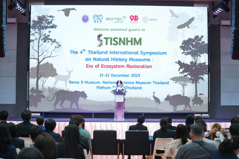 ขณะที่ ผศ.ดร.รวิน กล่าวว่า “NSM ถือเป็นหน่วยงานที่มีภารกิจสำคัญคือการเป็นศูนย์กลางของการศึกษาวิจัย รวบรวม (ผลงานที่อ้างอิงจากธรรมชาติ) วัสดุอุเทศ เผยแพร่ความรู้และจัดแสดงนิทรรศการด้านธรรมชาติวิทยาและความหลากหลายทางชีวภาพเป็นอันดับต้น ๆ ของประเทศ ทั้งนี้ อพวช. ได้เล็งเห็นถึงความสำคัญในการสื่อสารและแลกเปลี่ยนข้อมูลองค์ความรู้ทางวิชาการด้านธรรมชาติวิทยา รวมถึงการสร้างเครือข่ายนักวิจัยด้านธรรมชาติวิทยา จึงได้ดำเนินการจัด “การสัมมนาวิชาการนานาชาติพิพิธภัณฑ์ธรรมชาติวิทยา ครั้งที่ 4: วาระแห่งการฟื้นฟูระบบนิเวศ” (The 4th International Symposium on Natural History Sciences: Era of Ecosystem Restoration) ขึ้น โดยปีนี้ผู้ให้ความสนใจจากหลายภาคส่วนเข้าร่วมงานมากกว่า 150 คน โดยมีการนำเสนอผลงาน ภาคบรรยายทั้งหมด 58 เรื่อง จาก 10 ประเทศ โดยแบ่งเป็น 11 กลุ่มย่อย และภาคโปสเตอร์ 23 เรื่อง จาก 4 ประเทศ” งานนี้จัดขึ้นระหว่างวันที่ 21 - 22 ธันวาคม 2566 ณ ห้องแสงเดือน-แสงเทียน พิพิธภัณฑ์พระรามเก้า อพวช. ต.คลองห้า อ.คลองหลวง จ.ปทุมธานี