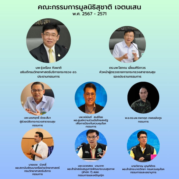 1. นพ.รุ่งเรือง กิจผาติ อธิบดีกรมวิทยาศาสตร์บริการ กระทรวง อว. ดำรงตำแหน่ง ประธานกรรมการมูลนิธิ