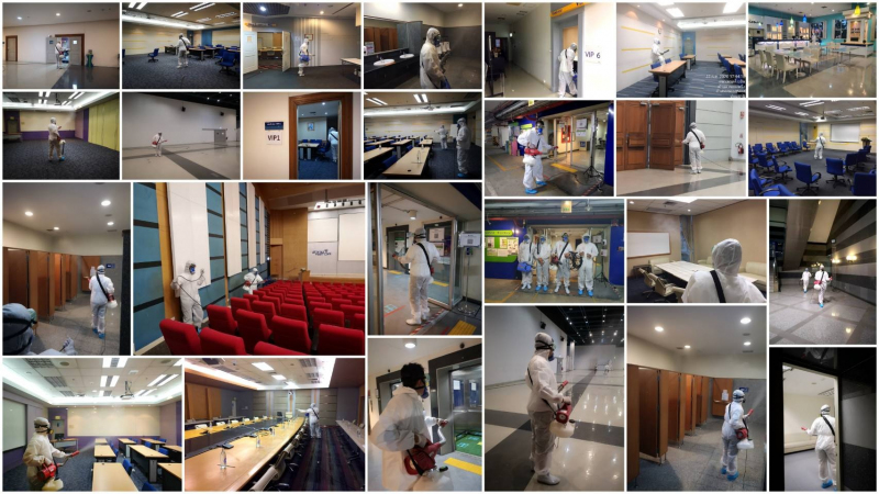 และที่ผ่านมา ได้ดำเนินการร่วมกับหน่วยปฏิบัติการป้องกันเชื้อไวรัส เทศบาลเมืองท่าโขลง จังหวัดปทุมธานี ทำความสะอาด และฆ่าเชื้อโรคในพื้นที่เสี่ยงที่เป็นพื้นที่การปฏิบัติงาน ตามมาตรการของกระทรวงสาธารณสุขเรียบร้อยแล้ว นอกจากนี้ได้รับความร่วมมือจากบริษัท คีนน์ จำกัด ร่วมดำเนินการพ่นฆ่าเชื้อ เพื่อทำความสะอาดพื้นที่ทุกอาคารภายในศูนย์ประชุมอุทยานวิทยาศาสตร์ประเทศไทย มาร่วมกันยกการ์ดให้สูงขึ้นอีกครั้งและสู้ไปด้วยกัน เพื่อลดและป้องกันการแพร่กระจายของ COVID-19 สวมใส่หน้ากากอนามัย ใช้เจลล้างมือฆ่าเชื้อ สแกนไทยชนะก่อนเข้า-ออกและรักษาระยะห่าง