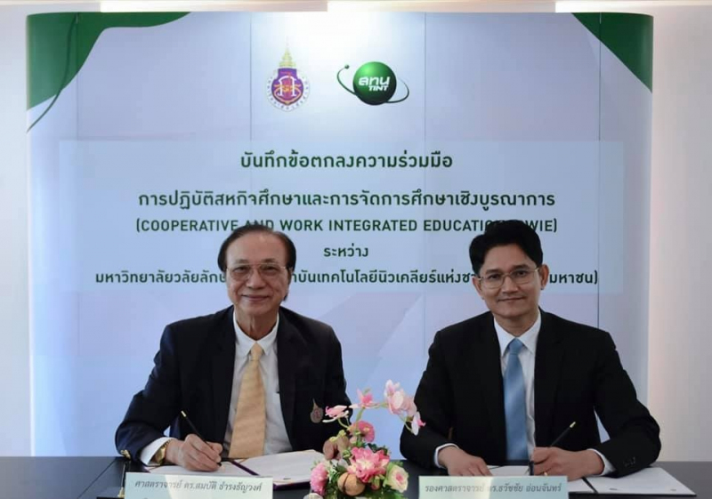 รองศาสตราจารย์ ดร.ธวัชชัย อ่อนจันทร์ ผู้อำนวยการสถาบันเทคโนโลยีนิวเคลียร์แห่งชาติ(สทน.) (องค์การมหาชน) และศาสตราจารย์ ดร.สมบัติ ธำรงธัญวงศ์ อธิการบดีมหาวิทยาลัยวลัยลักษณ์ (มวล.) และ ร่วมกันลงนาม ในบันทึกข้อตกลงความร่วมมือการปฏิบัติสหกิจศึกษาและการจัดการศึกษาเชิงบูรณาการ (COOPERATIVE AND WORK INTEGRATED EDUCATION: CWIE) ระหว่าง สทน.และ มวล. โดยมีดร.พิริยาธร สุวรรณมาลา รองผู้อำนวยการ สทน และ ผู้ช่วยศาสตราจารย์ ดร.ผดุงศักดิ์ สุขสอาด รองอธิการบดีฝ่ายกิจการสภามหาวิทยาลัย มวล. ร่วมเป็นสักขีพยาน พร้อมคณะผู้บริหารและบุคลากรของทั้ง 2 สถาบัน ร่วมกันงานในครั้งนี้ ณ ห้องประชุม 301 ชั้น 3 อาคาร 9 สทน.สำนักงานสาขาจตุจักร กรุงเทพมหานคร