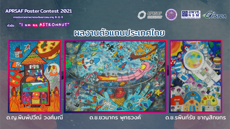องค์การพิพิธภัณฑ์วิทยาศาสตร์แห่งชาติ (อพวช.) ร่วมกับ สำนักงานพัฒนาเทคโนโลยีอวกาศและภูมิสารสนเทศ (องค์การมหาชน) (สทอภ.) สังกัดกระทรวงการอุดมศึกษา วิทยาศาสตร์ วิจัยและนวัตกรรม จัดกิจกรรมประกวดภาพวาดระดับเยาวชน อายุ 8-11 ปี (APRSAF Poster Contest) ในหัวข้อ “I am an astronaut” เพื่อส่งเสริมให้เยาวชนมีความคิด จิตนาการที่สร้างสรรค์ และรักในงานศิลปะ ซึ่งเป็นหนึ่งในกลไกของการเสริมสร้างทักษะความสามารถของคนไทยให้มีความพร้อมต่อการใช้เทคโนโลยีอวกาศควบคู่ไปกับการสื่อสารให้เกิดประโยชน์สูงสุดได้ในอนาคต โดยมีการประกาศผลรอบชิงชนะเลิศ ในวันที่ 18 ตุลาคม 2564 ณ ห้อง IT Theater พิพิธภัณฑ์เทคโนโลยีสารสนเทศ อพวช. โดยมีผลงานของเยาวชนเข้ารอบชิงชนะเลิศ จำนวน 51 ผลงาน โดยผลกิจกรรมการประกวดภาพวาดระดับเยาวชน อายุ 8-11 ปี (APRSAF Poster Contest) หัวข้อ “I am an astronaut” ในรอบชิงชนะเลิศมี ดังนี้