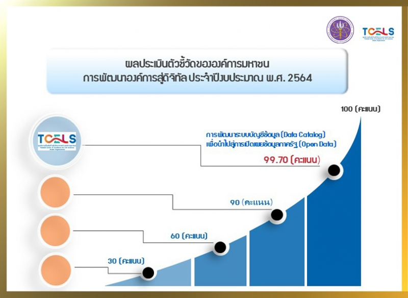 กระทรวงการอุดมศึกษา วิทยาศาสตร์ วิจัยและนวัตกรรม (อว.) โดย ศูนย์ความเป็นเลิศด้านชีววิทยาศาสตร์ (องค์การมหาชน) หรือ ทีเซลส์ (TCELS) ได้รับผลประเมินตัวชี้วัดขององค์การมหาชน "การพัฒนาองค์การสู่ดิจิทัล ประจำปีงบประมาณ พ.ศ. 2564" หัวข้อ การพัฒนาระบบบัญชีข้อมูล (Data Catalog) เพื่อนำไปสู่การเปิดเผยข้อมูลภาครัฐ (Open Data) เป็นที่น่ายินดีอย่างยิ่ง ที่ได้รับผลประเมินตัวชี้วัดขององค์การมหาชนในคะแนนระดับดีมากถึงร้อยละ 99.70