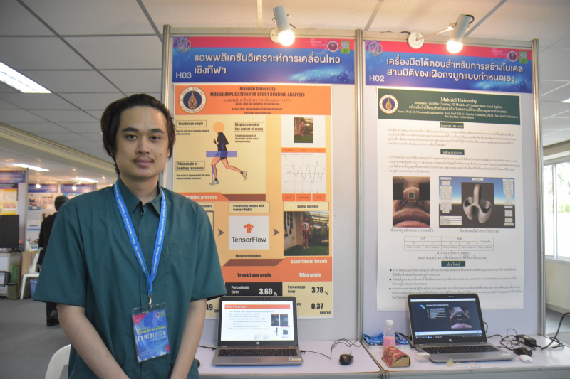 นายปรมัตถ์ จรัสดำรง แห่งมหาวิทยาลัยมหิดล ทีมนักประดิษฐ์ เปิดเผยว่า แอพพลิเคชันวิเคราะห์การเคลื่อนไหวเชิงกีฬา เป็นระบบ Computer vision (CV) โดยการนำปัญญาประดิษฐ์มาช่วยในการตรวจจับการวิเคราะห์ลักษณะการวิ่งของผู้ใช้งาน ซึ่งภายในแอพพลิเคชันจะทำการบันทึกการเคลื่อนไหวของผู้ใช้งานนำไปสู่การประมวลผลลักษณะการวิ่งของผู้วิ่งเพื่อปรับท่าวิ่งให้ถูกลักษณะ ช่วยลดอาการบาดเจ็บจากการวิ่ง เหมาะแก่การวิเคราะห์การเคลื่อนไหวทางการกีฬาที่สามารถใช้งานบนโทรศัพท์มือถือที่มีขนาดกะทัดรัดและสามารถพกพาได้สะดวก ซึ่งหลักการทำงานของแอพพลิเคชันดังกล่าวผู้วิ่งต้องทำการลงทะเบียนและติดตั้งแอพพลิเคชัน และตั้งกล้องให้เป็นลักษณะตั้งตรง ระบบจะสร้าง Spatial skeleton ขึ้นมาเสมือนเป็นกระดูกของผู้วิ่งแบบดิจิทัล เพื่อจำลองตำแหน่งส่วนต่าง ๆ ของร่างกาย ระบบเซ็นเซอร์ตรวจจับความเคลื่อนไหวเมื่อครบ 10 วินาทีจะมีเสียงส่งสัญญาณแจ้งเตือน หลังจากทำการวัดส่วนสูง ระบบจะส่งเสียงนกหวีดส่งสัญญาณแจ้งเตือนหนึ่งครั้ง ให้ผู้วิ่งเริ่มทำการวิ่ง โดยให้ผู้วิ่งทำการวิ่งอยู่กับที่ตามปกติจนกว่านาฬิกาจับเวลาจะหมดลง เมื่อเวลาหมดลงระบบจะทำการส่งสัญญาณเตือนอีกครั้งเพื่อบอกให้ผู้วิ่งหยุดวิ่ง และรายงานผลลักษณะชีวกลศาสตร์ที่ได้จากการวิ่ง โดยที่แอพพลิเคชั่นสามารถวิเคราะห์ลักษณะชีวกลศาสตร์ได้ 3 ส่วน ได้แก่ 1) Vertical displacement of the center of mass 2) Trunk Lean 3) Tibia angle at a loading response ซึ่งผู้วิ่งและโค้ชสามารถนำผลที่ได้จากการวิเคราะห์และประมวลผลดังกล่าวไปช่วยเพิ่มศักยภาพของนักกีฬาเพื่อเพิ่มโอกาสที่จะได้รับชัยชนะให้ดียิ่งขึ้น นับเป็นผลงานประดิษฐ์คิดค้นในการเก็บวิเคราะห์และคำนวณผลข้อมูลสารสนเทศที่แม่นยำและในอนาคตจะมีการพัฒนาระบบแอพพลิเคชันให้ดียิ่งขึ้นและตอบโจทย์ต่อผู้ใช้งานต่อไป