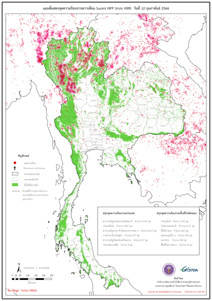 GISTDA เผยข้อมูลจากดาวเทียมซูโอมิ เอ็นพีพี (Suomi NPP) ของระบบเวียร์ (VIIRS) ไทยพบจุดความร้อนวานนี้ (12 ก.พ. 66) 3,097 จุด ในขณะที่จุดความร้อนของประเทศเพื่อนบ้านอย่างสาธารณรัฐสหภาพเมียนมาร์ยังคงเป็นอันดับหนึ่งสูงถึง 3,372 จุด ในขณะที่ สปป.ลาว 2,113 จุด ราชอาณาจักรกัมพูชา 973 จุด