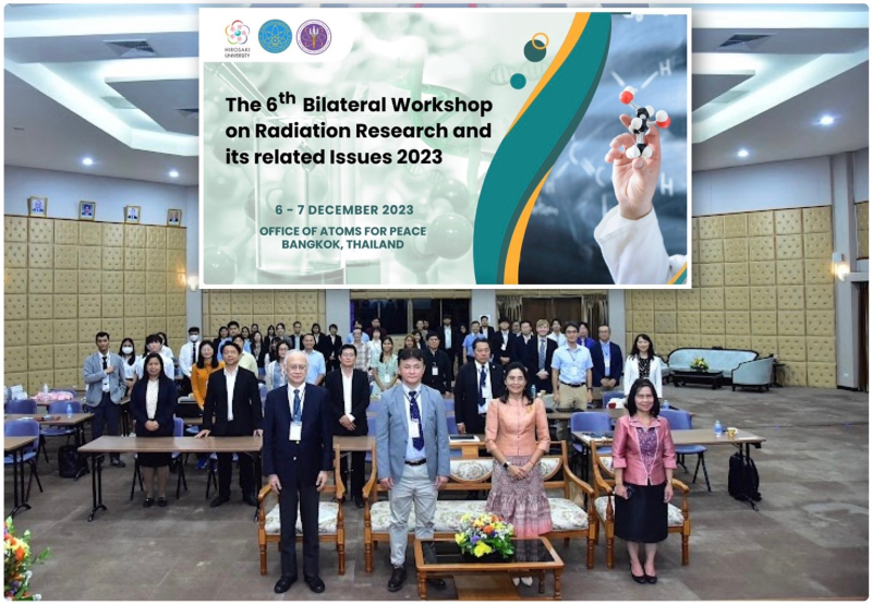 สำนักงานปรมาณูเพื่อสันติ (ปส.) กระทรวงการอุดมศึกษา วิทยาศาสตร์ วิจัยและนวัตกรรม (อว.) ร่วมกับมหาวิทยาลัยฮิโรซากิ ประเทศญี่ปุ่น จัดการประชุม “The 6 Bilateral Workshop on Radiation Research and its relates issues 2023” ตั้งแต่วันที่ 6 - 7 ธันวาคม 2566 ณ ห้องประชุมใหญ่ ชั้น 2 อาคาร 1 ปส. ซึ่งการประชุมมีวัตถุประสงค์เพื่อสร้างความร่วมมือและแลกเปลี่ยนความรู้ ข้อมูลทางวิชาการและงานวิจัยของผู้เชี่ยวชาญ นักวิจัย และนักวิชาการจากหน่วยงานและมหาวิทยาลัยภายใต้กระทรวง อว. และมหาวิทยาลัยของประเทศญี่ปุ่น ในด้านการกำกับดูแลความปลอดภัยทางนิวเคลียร์และรังสี การประเมินปริมาณรังสี กัมมันตภาพรังสีในสิ่งแวดล้อม การเตรียมความพร้อมและการตอบสนองกรณีฉุกเฉินทางนิวเคลียร์และรังสี  และเรื่องอื่น ๆ ที่เกี่ยวข้อง โดยมีผู้เชี่ยวชาญ นักวิจัย และนักศึกษา จาก ปส., สถาบันเทคโนโลยีนิวเคลียร์แห่งชาติ (องค์การมหาชน) (สทน.) และมหาวิทยาลัยจากประเทศไทย และประเทศญี่ปุ่น จำนวนทั้งสิ้น 9 แห่ง 60 คน ทั้งนี้การประชุมครั้งนี้ จะเป็นการสร้างความร่วมมือด้านวิชาการ และงานวิจัยด้านการกำกับดูแลความปลอดภัยทางนิวเคลียร์และรังสี และด้านอื่น ๆ ที่เกี่ยวข้อง ระหว่างหน่วยงานภายใต้กระทรวง อว. และมหาวิทยาลัยจากประเทศญี่ปุ่นอย่างเข้มแข็ง และยั่งยืนต่อไป