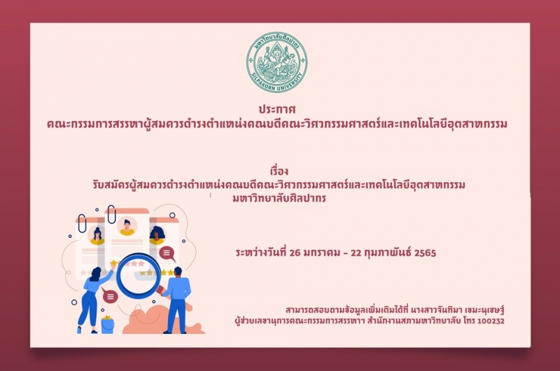 มหาวิทยาลัยศิลปากร เปิดรับสมัครผู้เข้ารับการสรรหาเป็นผู้สมควรดำรงตำแหน่งคณบดีคณะวิศวกรรมศาสตร์และเทคโนโลยีอุตสาหกรรม